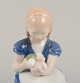 Bing & Grøndahl, Danmark.Porcelænsfigur af siddende pige med blomsterbuket i armene.