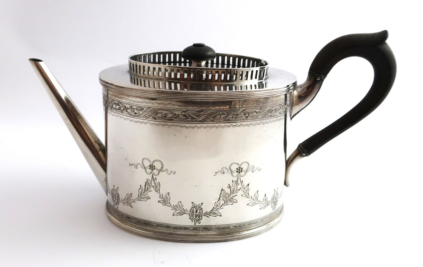 Michelsen. Sølvtekande (830). Længde 22,5 cm. Højde 11 cm. Produceret 1887 Udstiller