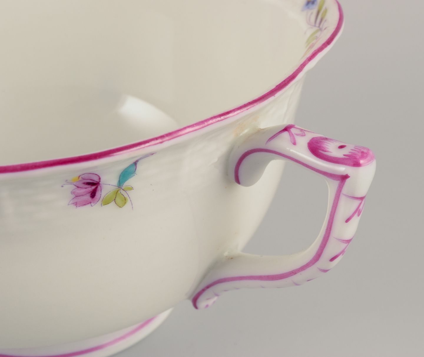 Herend, three pairs of large porcelain teacups.Hand-painted with polychrome floral motifs.