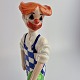 Porcelænsfigur formet som en klovn med ternet bukser og rød næse