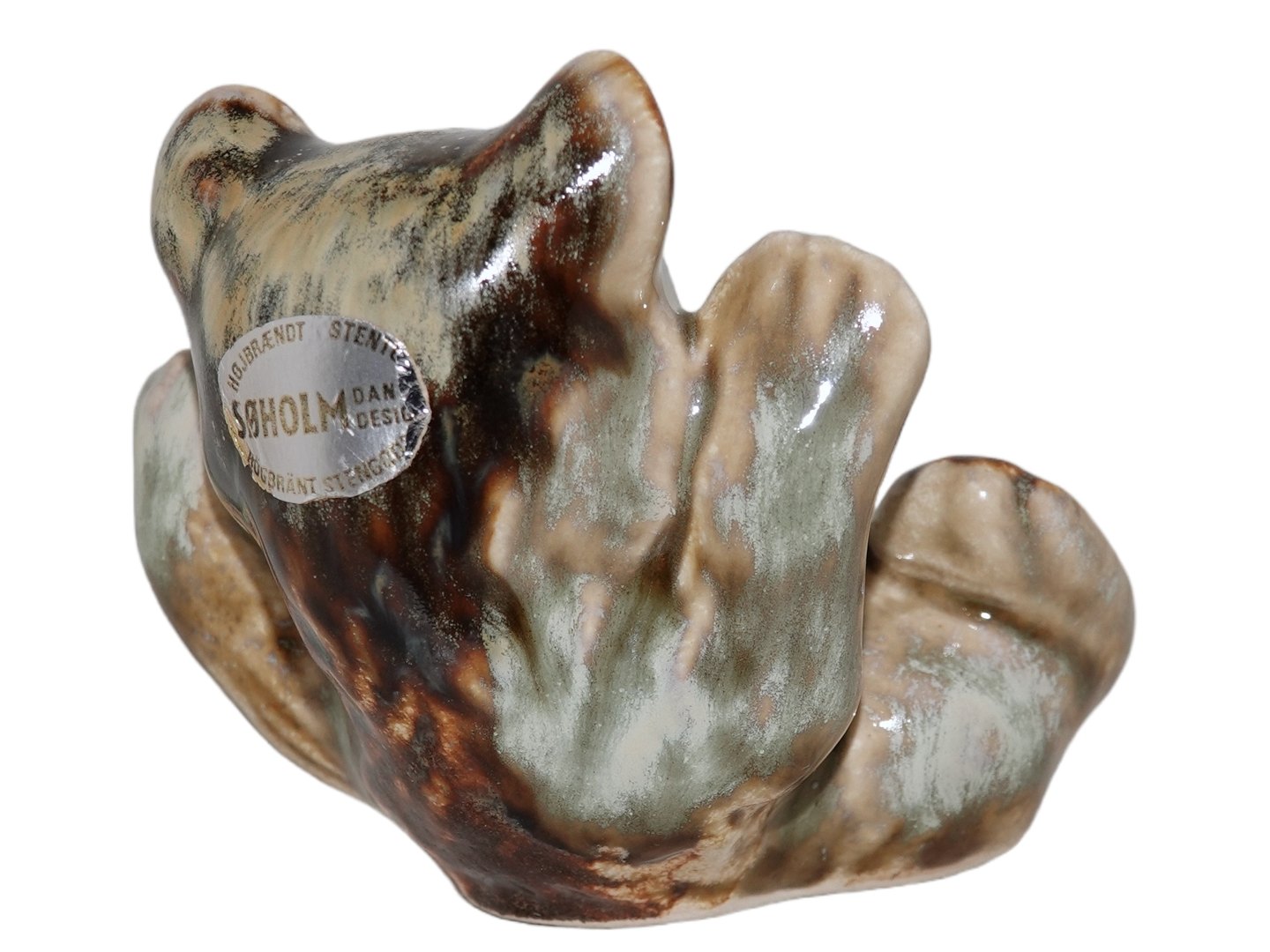 Soholm art pottery figurine, bear cub playing.Length 7.5 cm.
