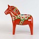 Figur af rød Dalarhest i malet og lakeret træFremstillet i Sverige