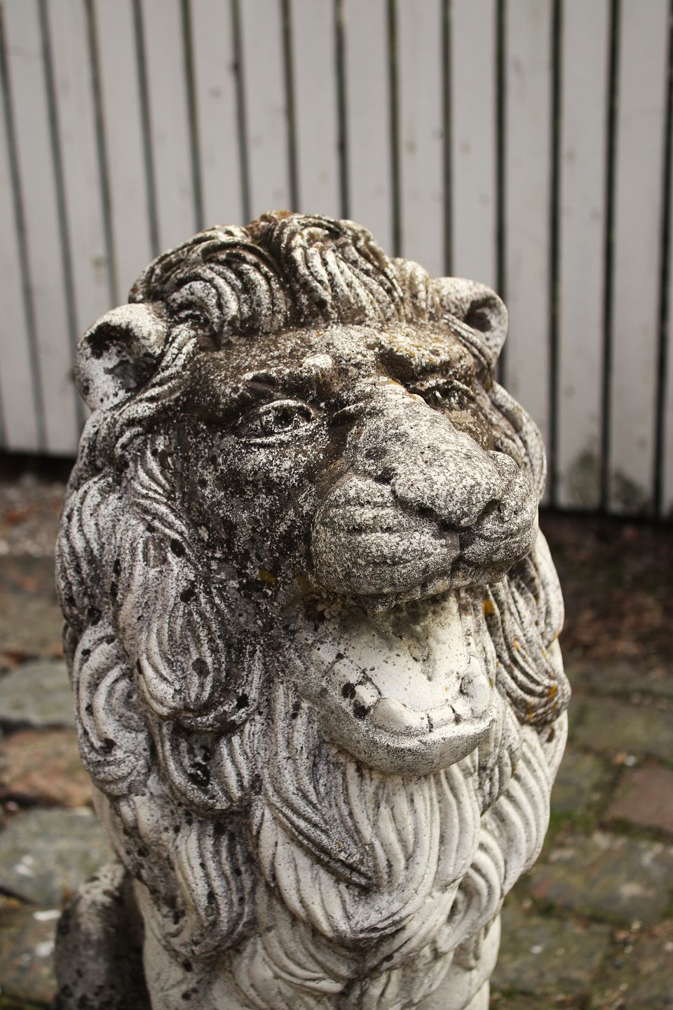 Stor , dekorativ gammel løve i sandsten med fin patina af vind & vejr.H: 63cm. D: 40cm. B: 30cm.