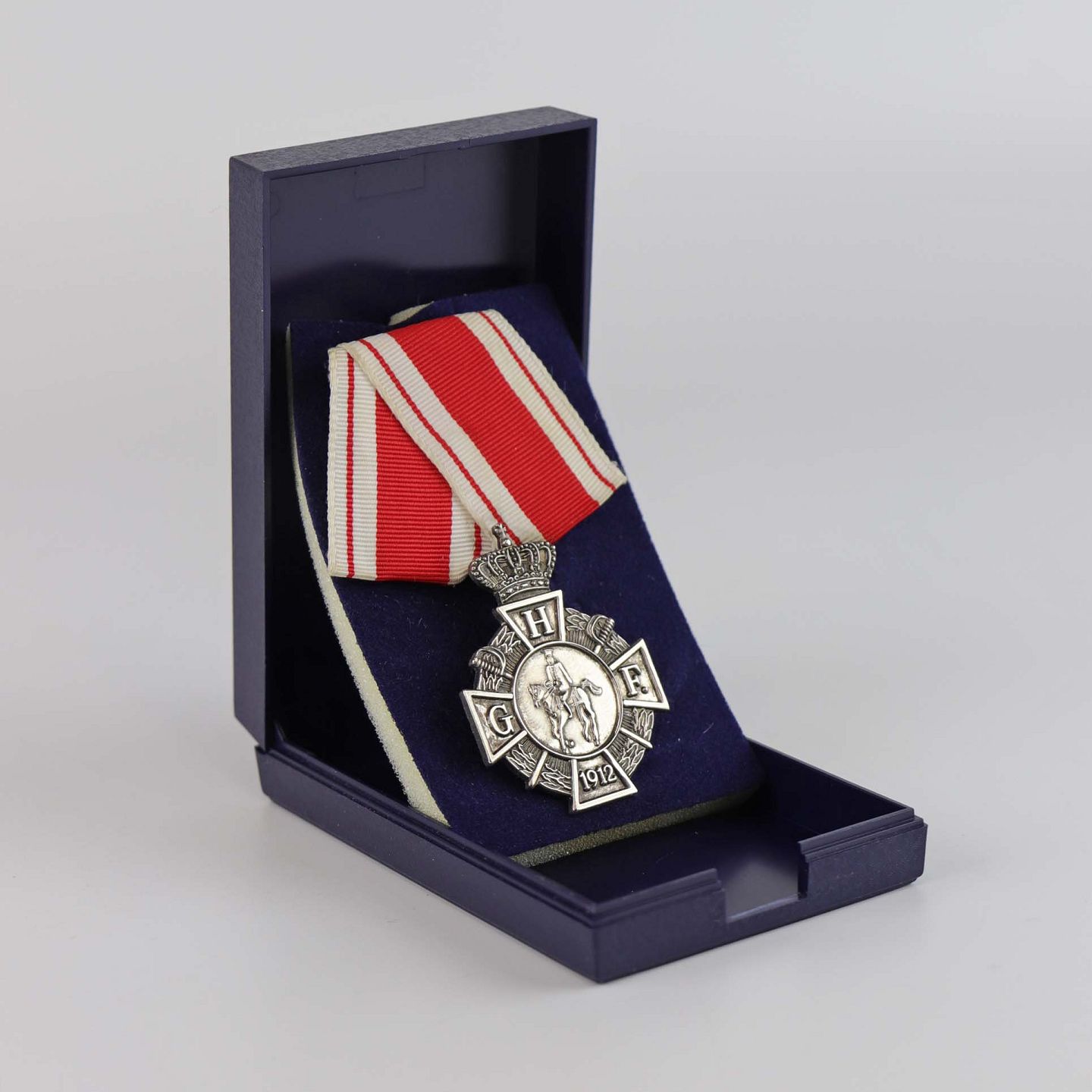 Gardehusarforeningens medlemsmedalje i sølv, med teksten HGF 1912Stemplet Emblex