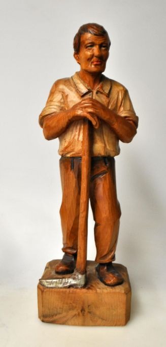 Ubekendt kunstner (20. årh. ): En arbejdsmand. Udskåret bemalet træskulptur. Fyrretræ. Usigneret. H.: 29 cm.Emne nummer: 26510