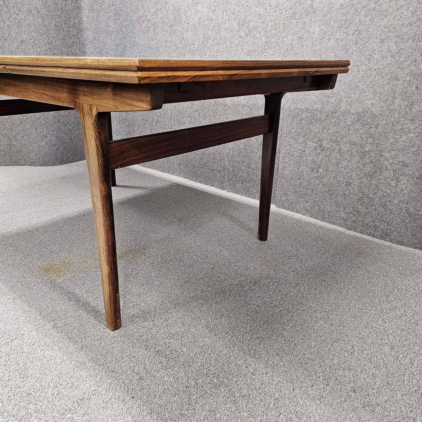 Spisebord i lakeret palisander med hollandsk udtræk i begge ender.Producent Vejle stole- og møbelfabrik
