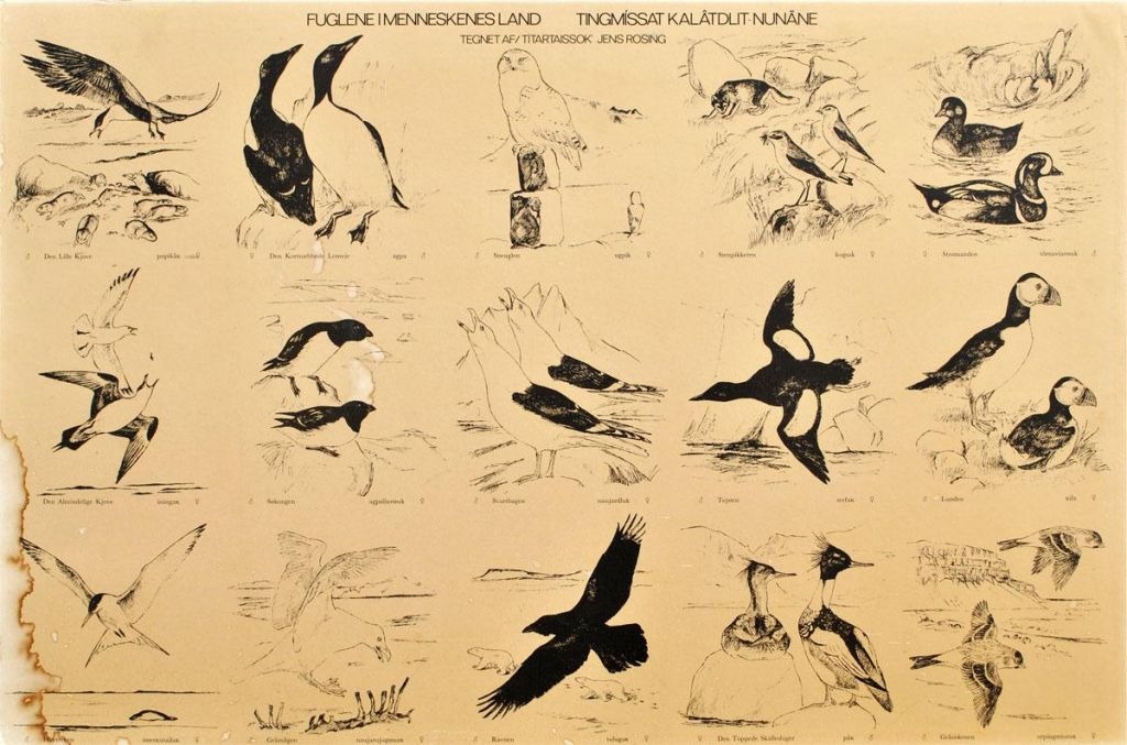Rosing, Jens (1925 - 2008) Danmark: Fuglene i menneskenes land / Tingmíssat Kalâtdlit-Nunane. Plakater opklæbet på plade. 62 x 93 cm. 2 stk.Uden ramme.
