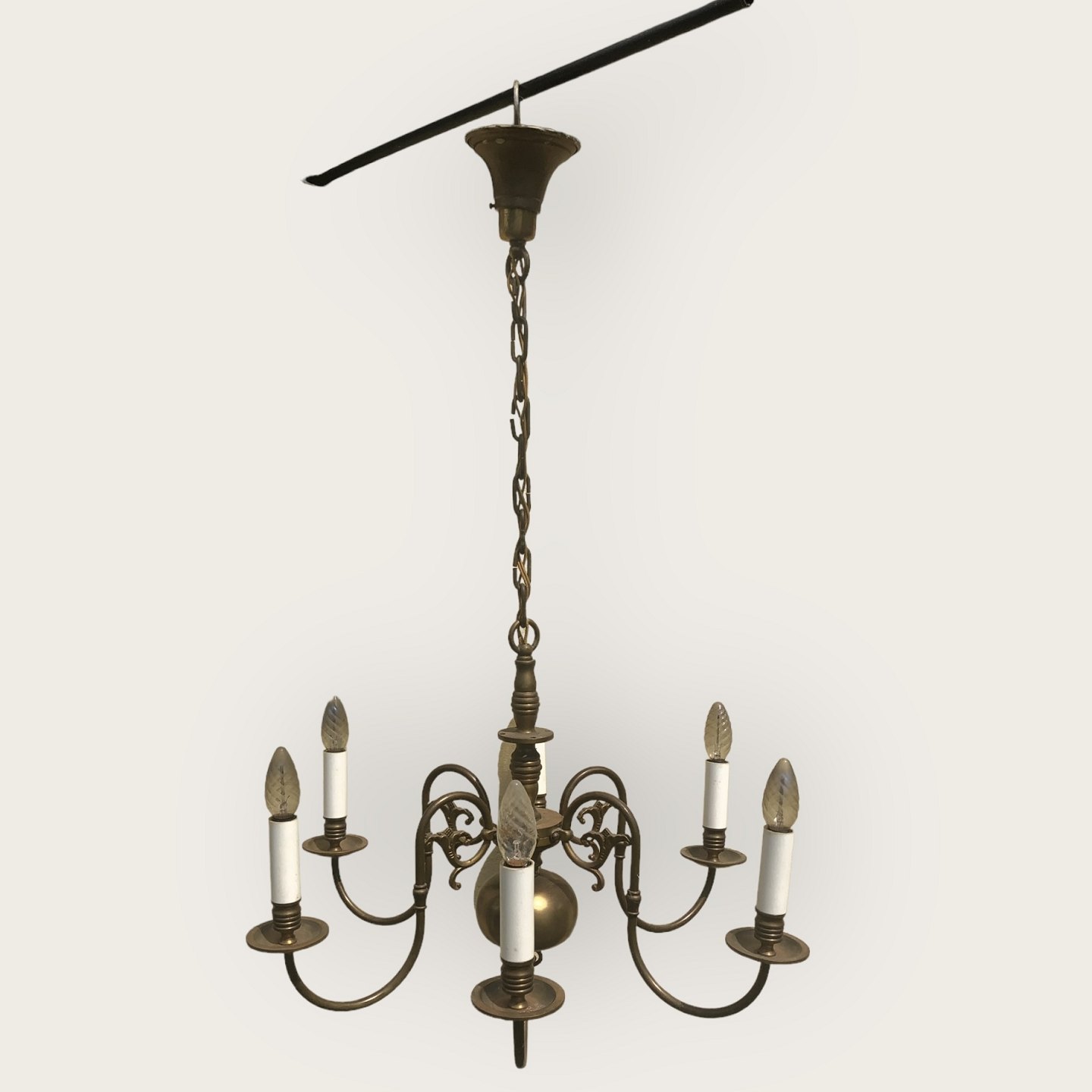 6 armet kirkekrone i messing. Pæn patineret stand. Diameter ca. 64 cmLager: 1