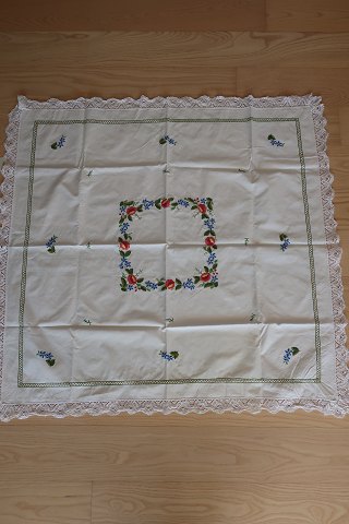 Old table clothWith embroidery in colours - made by hand