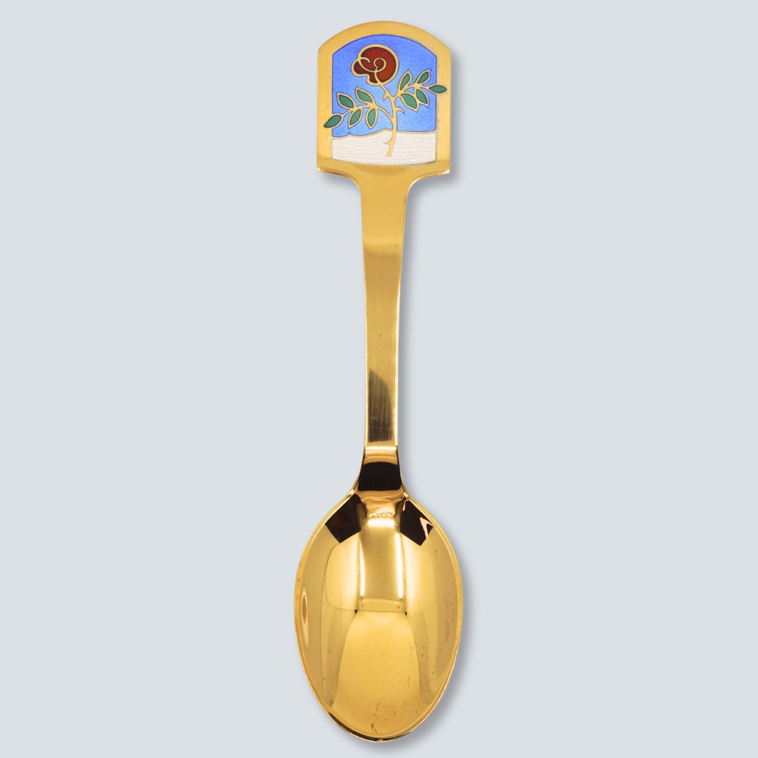 A. Michelsen christmas spoon.Poul Hanmann for Anton Michelsen; A christmas spoon 1977. Spoon of gilt sterling silver with enamel. Designed by Poul Hanmann, b. 1915, d. 1981. Danish design silver.