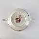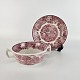 Rød Paris er af engelsk fajance dekoreret med forskellige landskaber og blomster i kanten, alt i forskellige røde nuancer