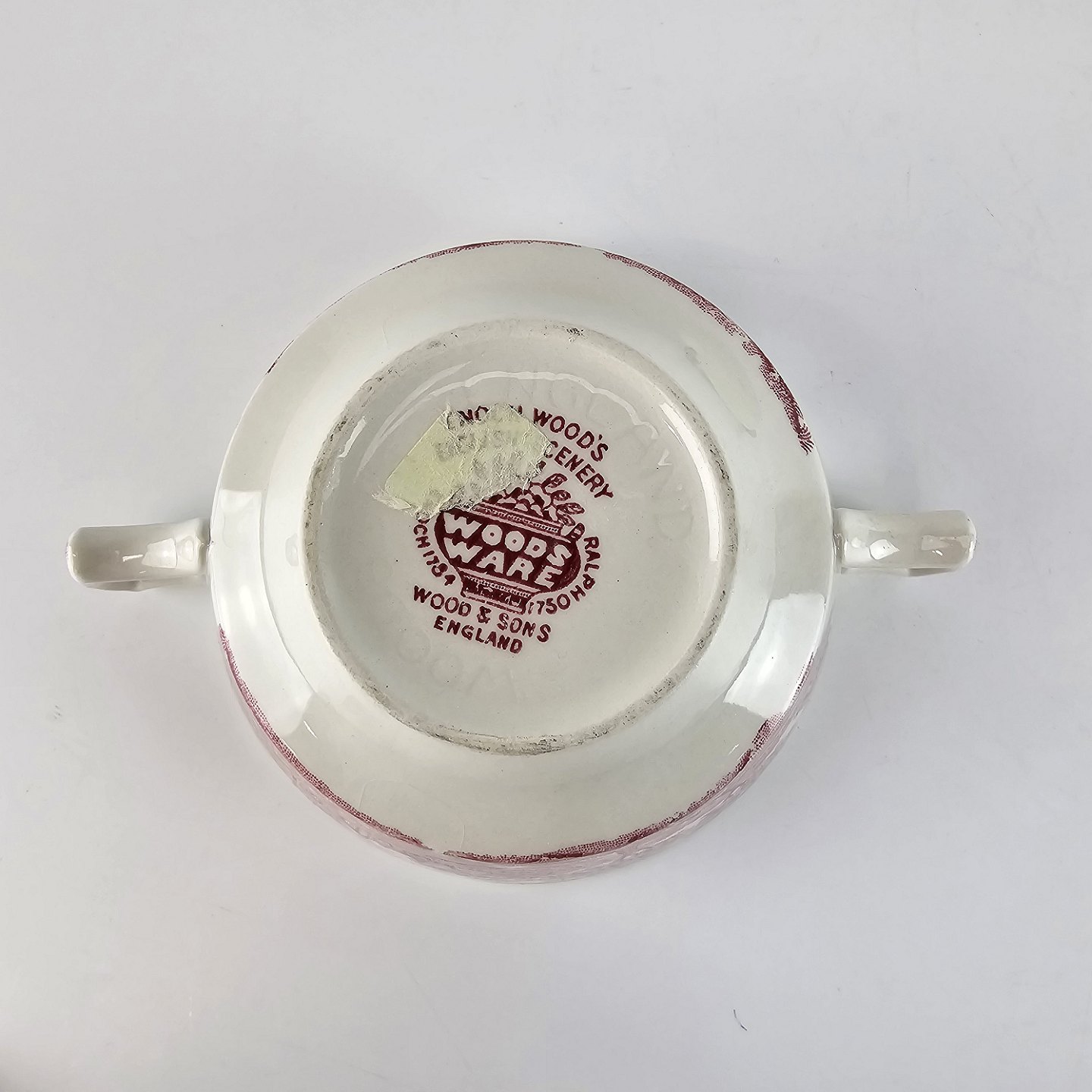 Bouillon kop med kantet øre fra det engelske stel Rød Paris (Enoch wood's, English scenery)Producent Wood & Sons, England