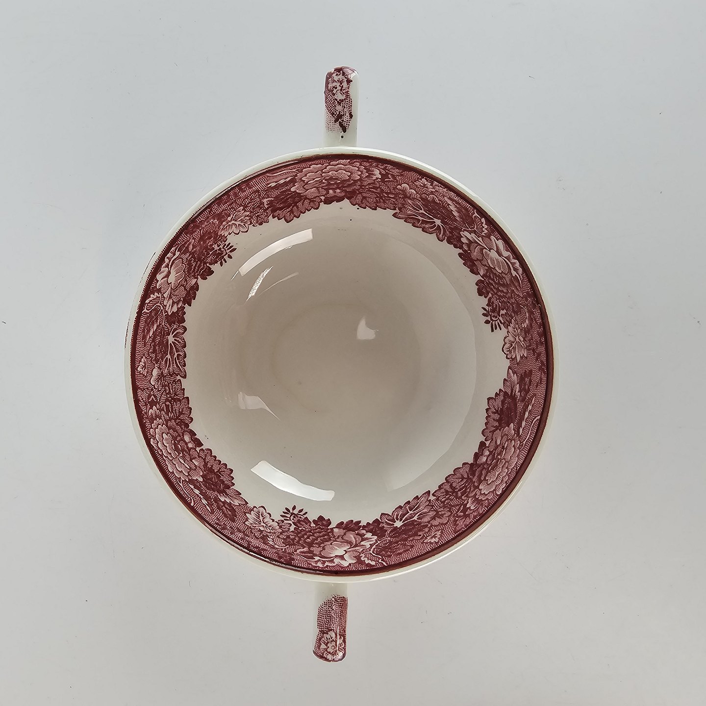 Bouillon kop med spidse øre fra det engelske stel Rød Paris (Enoch wood's, English scenery)Producent Wood & Sons, England