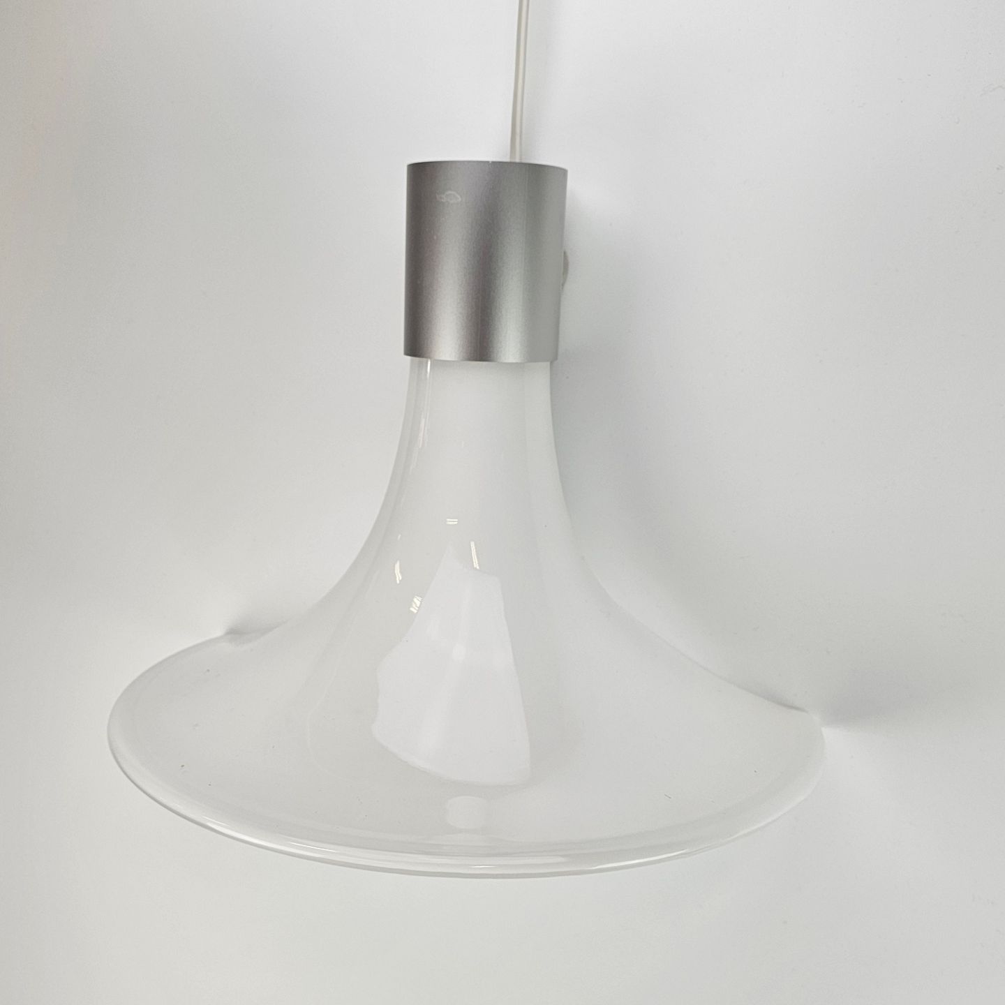 Mundblæst hvid glaslampe med stålhætte, til vægProducent Holmegaard/Royal Copenhagen