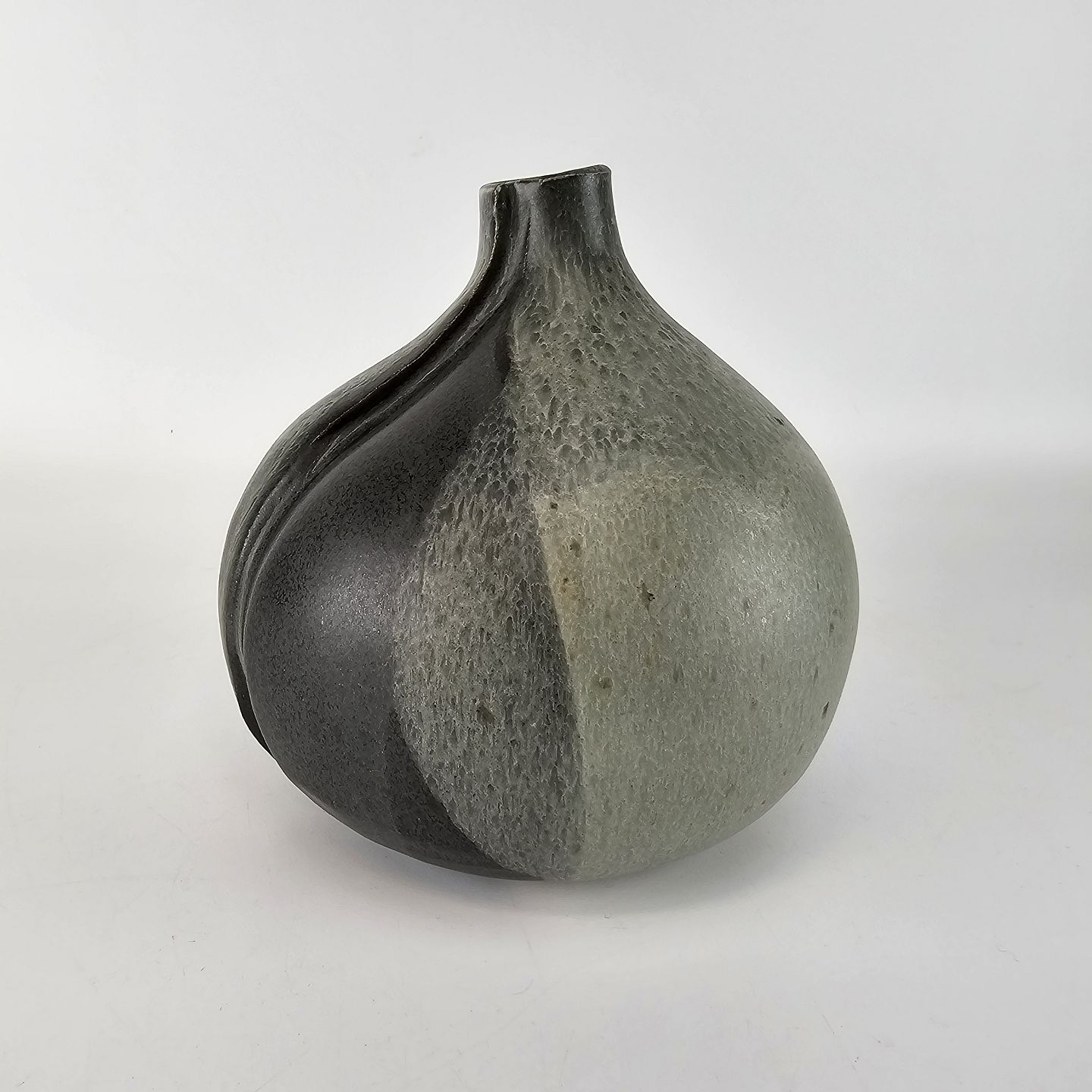Rund vase i keramik med tilspidset hals i dæmpede lyse, gråblå og sorte Producent KH Würtz keramik, Horsens