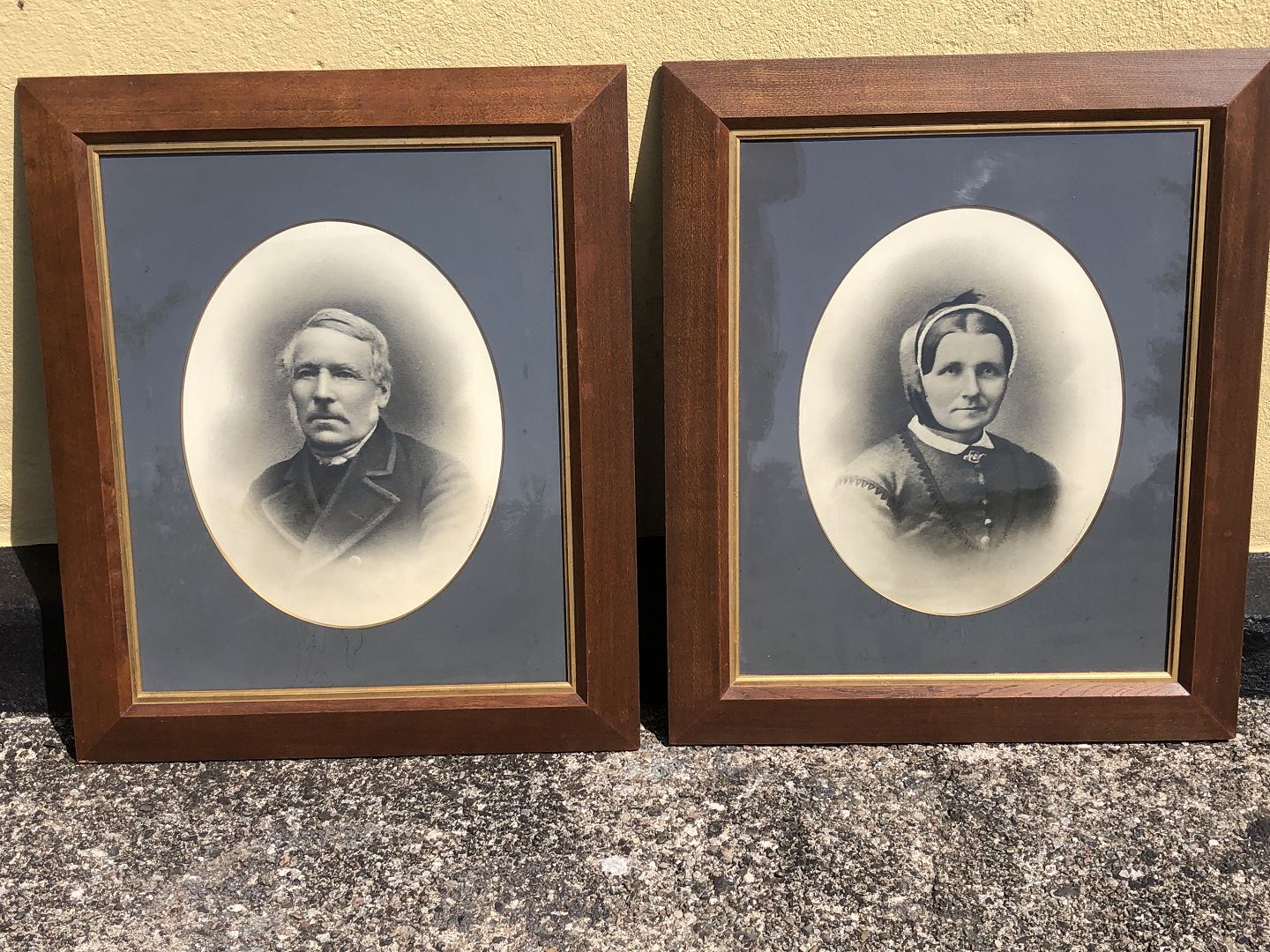 Two older photos in beautiful oak frames, Portraits of: Jakob Jørgensen (1816-1901) and Karen Olsdatter (1826-1901), See the rest of the text on the photo, Dimensions: 65x78 cm, Nice patinated condition.Stock: 1