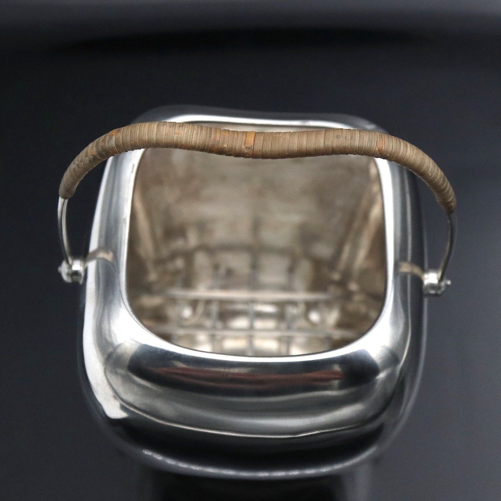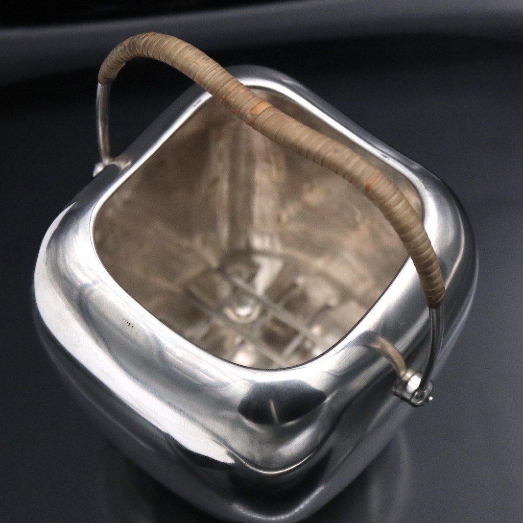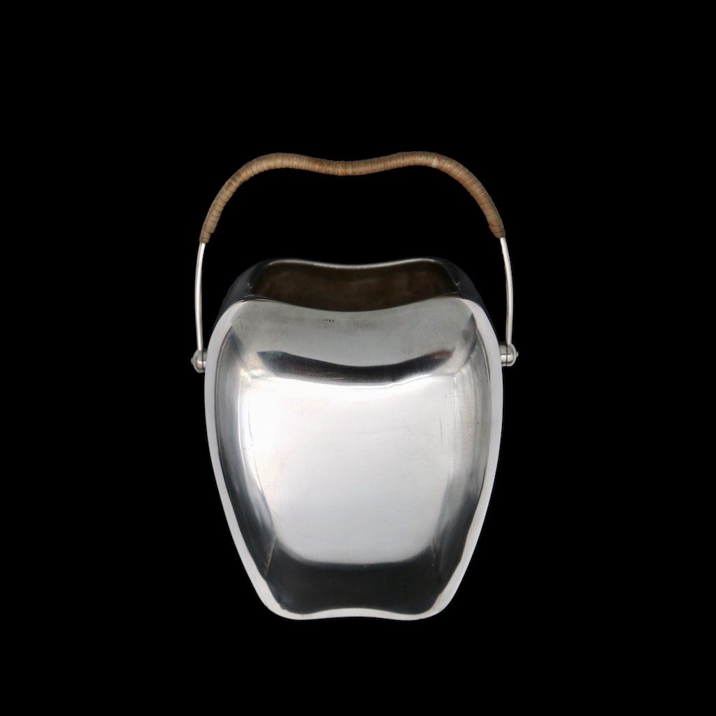 C.C. Hermann - Copenhagen. Sterling Silver Ice Bucket #J59.Handle with original Cane Wicker. Bottom with grid-pattern insert.