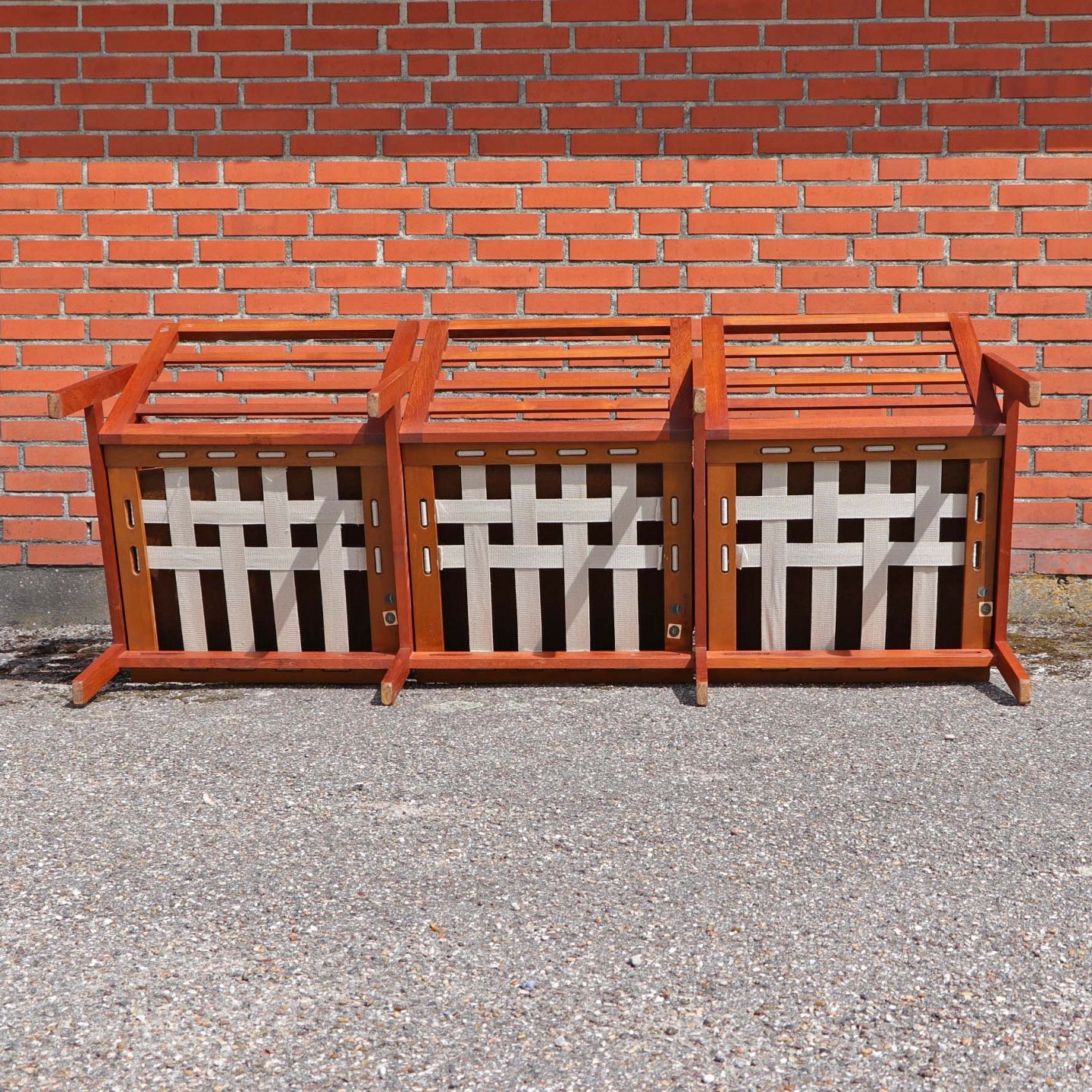 Tre personers sofa model Capella med stel i lakeret teaktræ og hynder betrukket med brunmeleret uldstof.Design Illum Wikkelsø