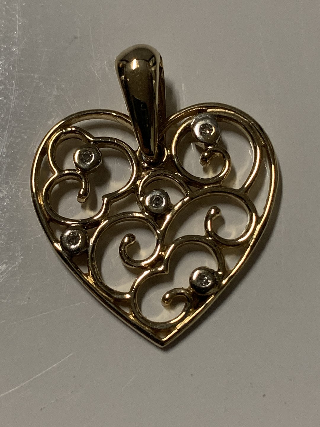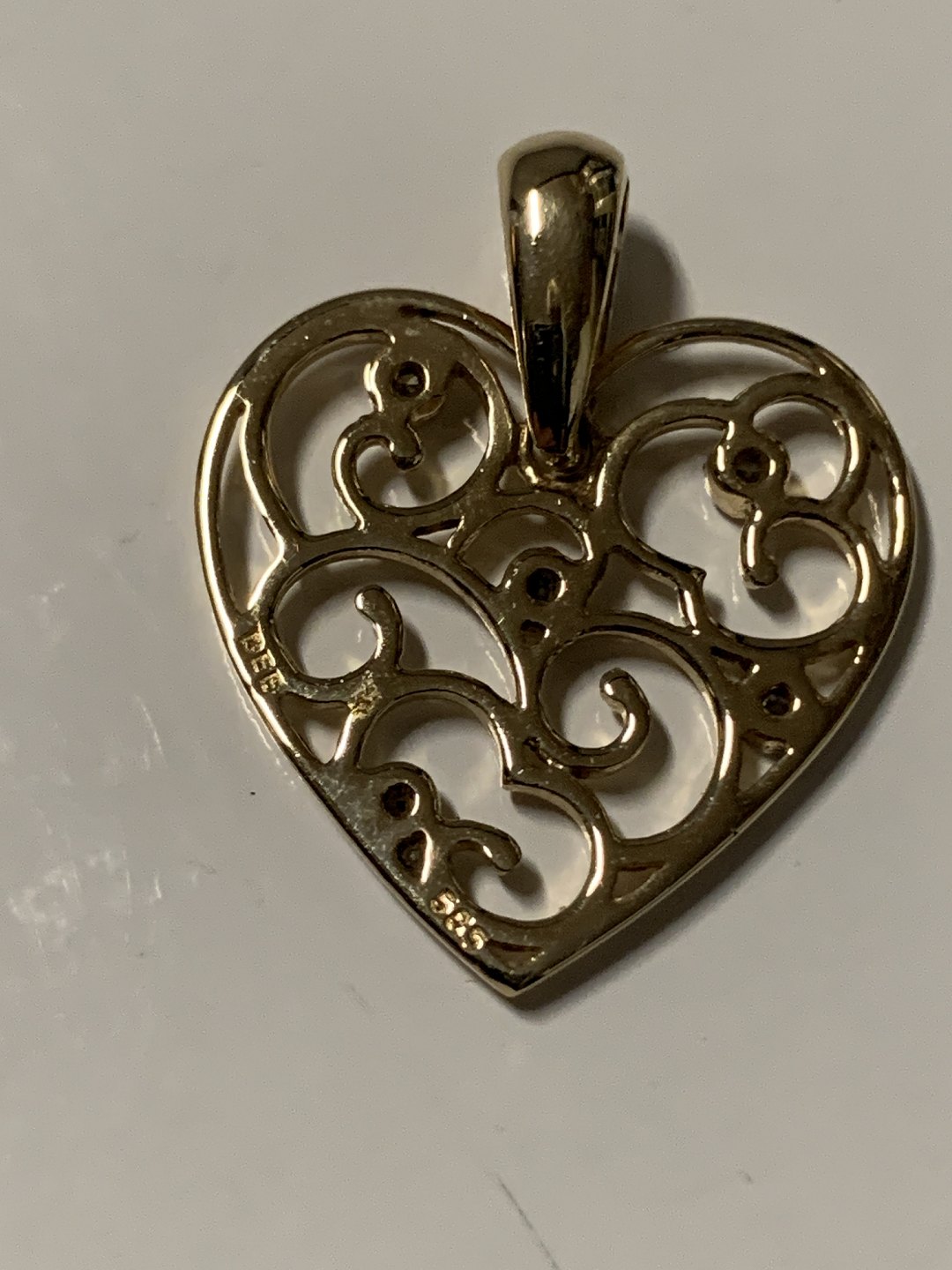 Flot vedhæng, udformet som Hjerte med indlagt Diamanter, i 14 karat guld. Velegnet til halskæde, eller som vedhæng i armbånd.Længde med øsken: 24,72 mm.