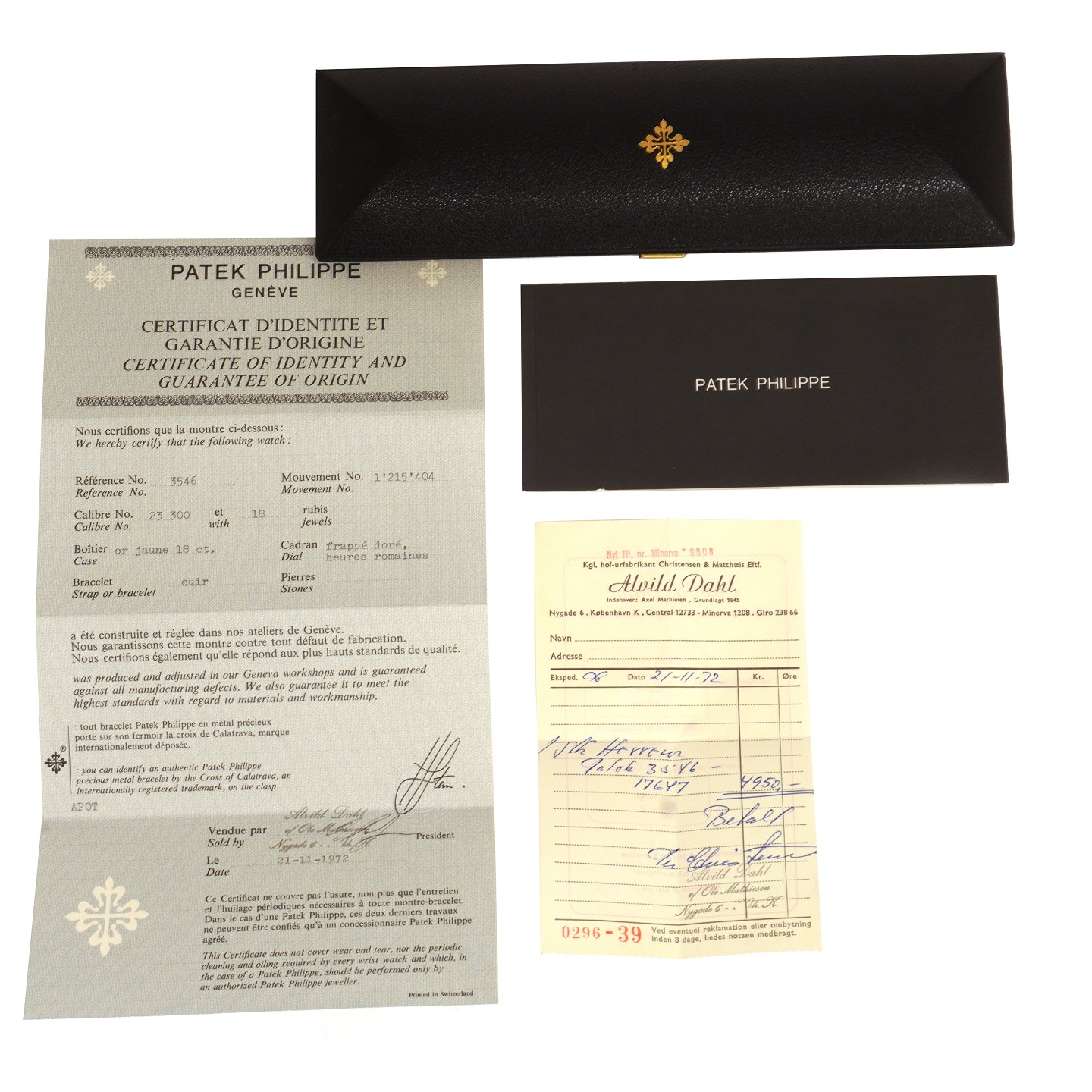Patek Philippe Ellipse ur i 18kt guld ref. nr. 3546. Fuldt sæt med danske papirer. Solgt 21.11.1972. Kasse: 32x27mm. Leveres med box, certifikat og original købskvittering