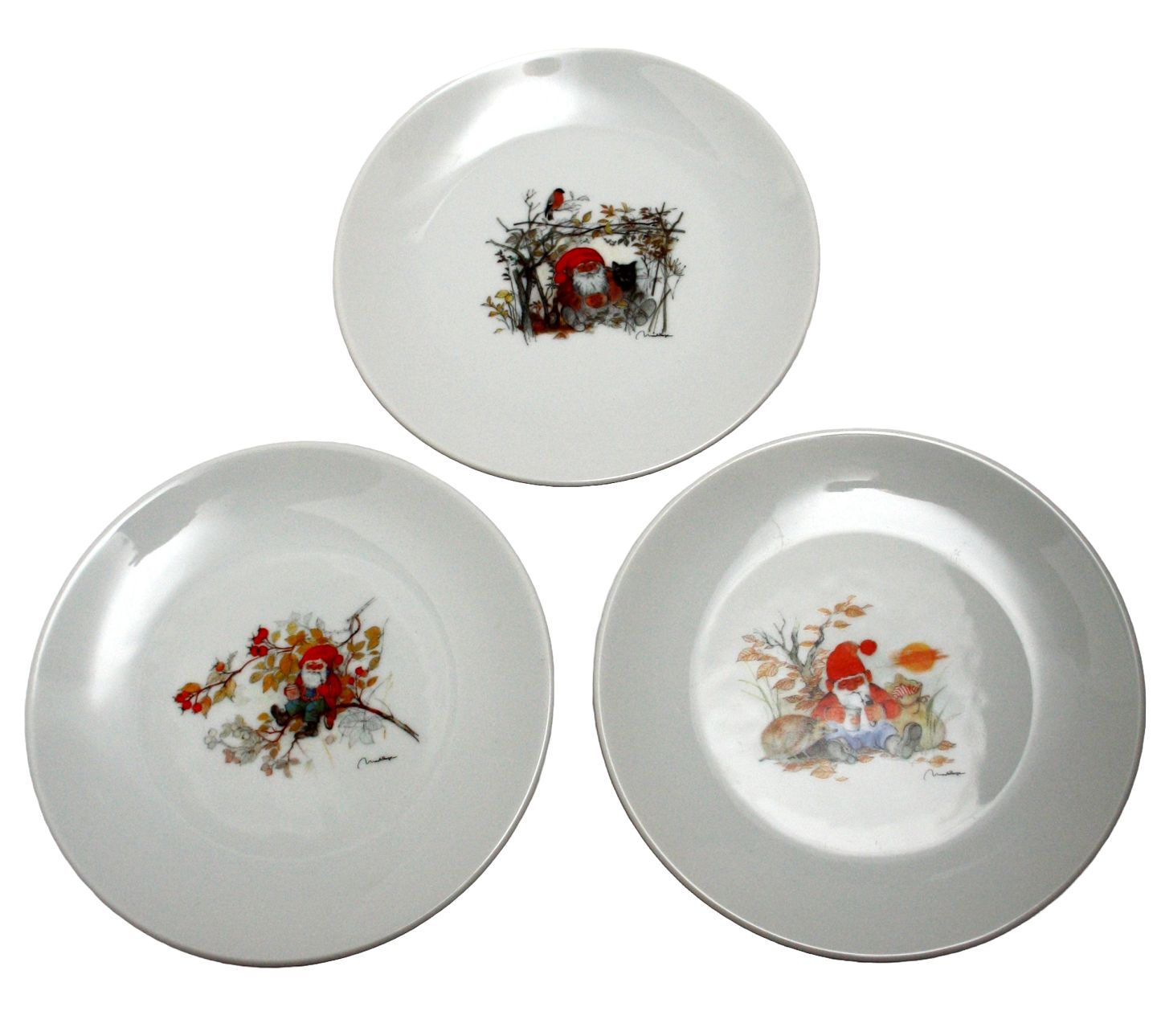 Mads Stage flad juletallerken. Diameter 18,5 cm. Mrk. MZ. Czech republik. Pris: 75 kr. stk.Gammel nisse med sæk og pindsvin. Lager: 1