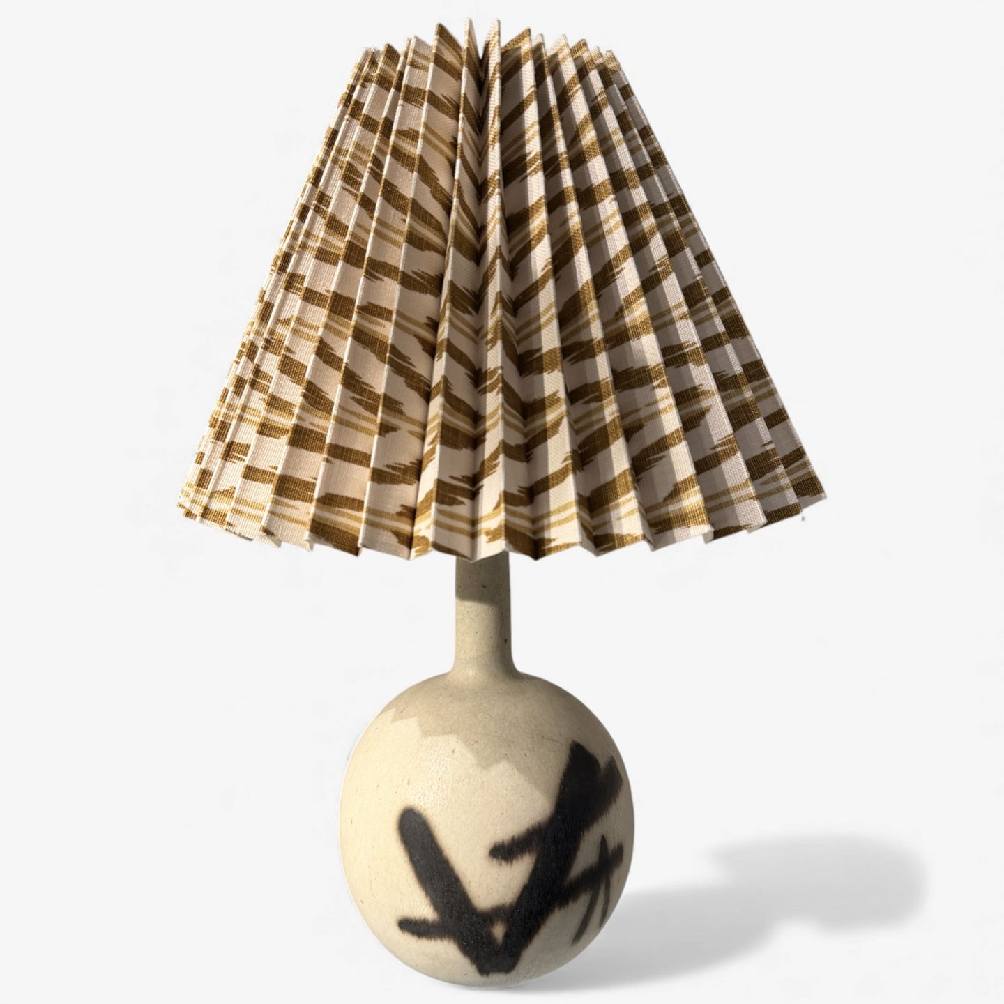 Table lamp in stoneware with black pattern.