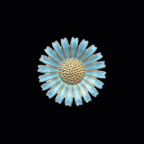 A. Michelsen. Gilded Sterling Silver Daisy Brooch with Turquoise Enamel - 33mm.Crafted by A. Michelsen (1841 - 1985)