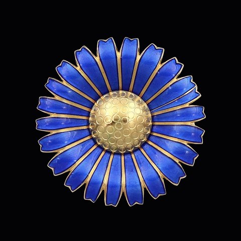 Georg Jensen Marguerit / Daisy Broche / Vedhæng i forgyldt sterling sølv med blå emalje - 50mm.