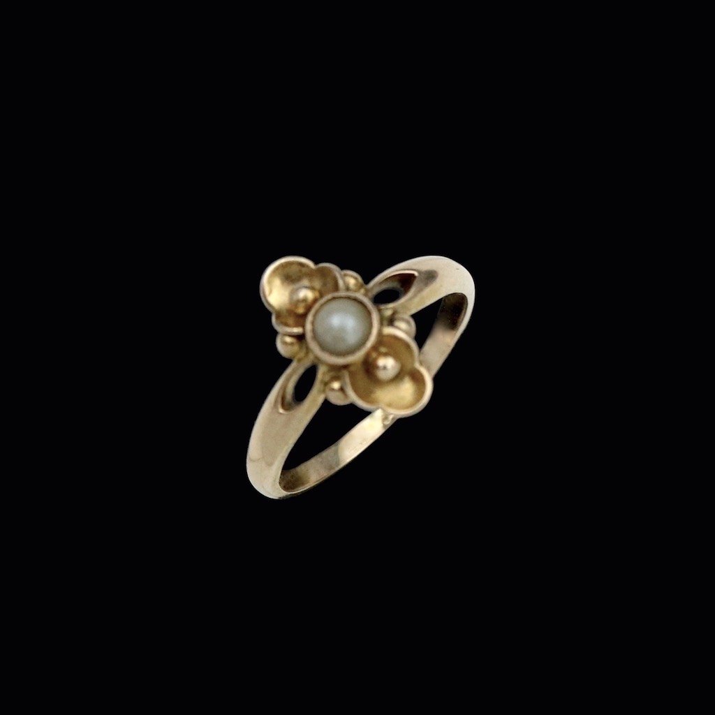 Evald Nielsen 1879-1958. Art Nouveau 14k Gold Ring with Pearl.Designed and crafted by Evald Nielsen 1879-1958.