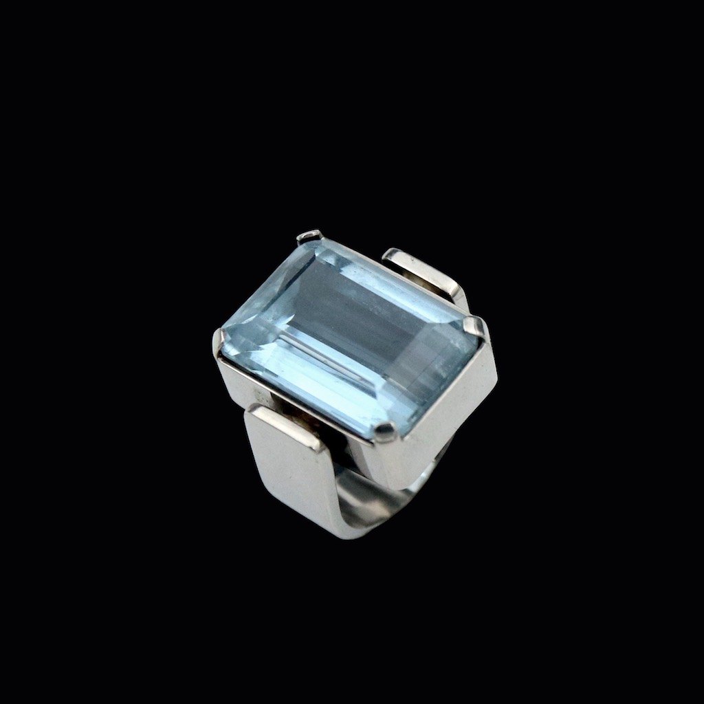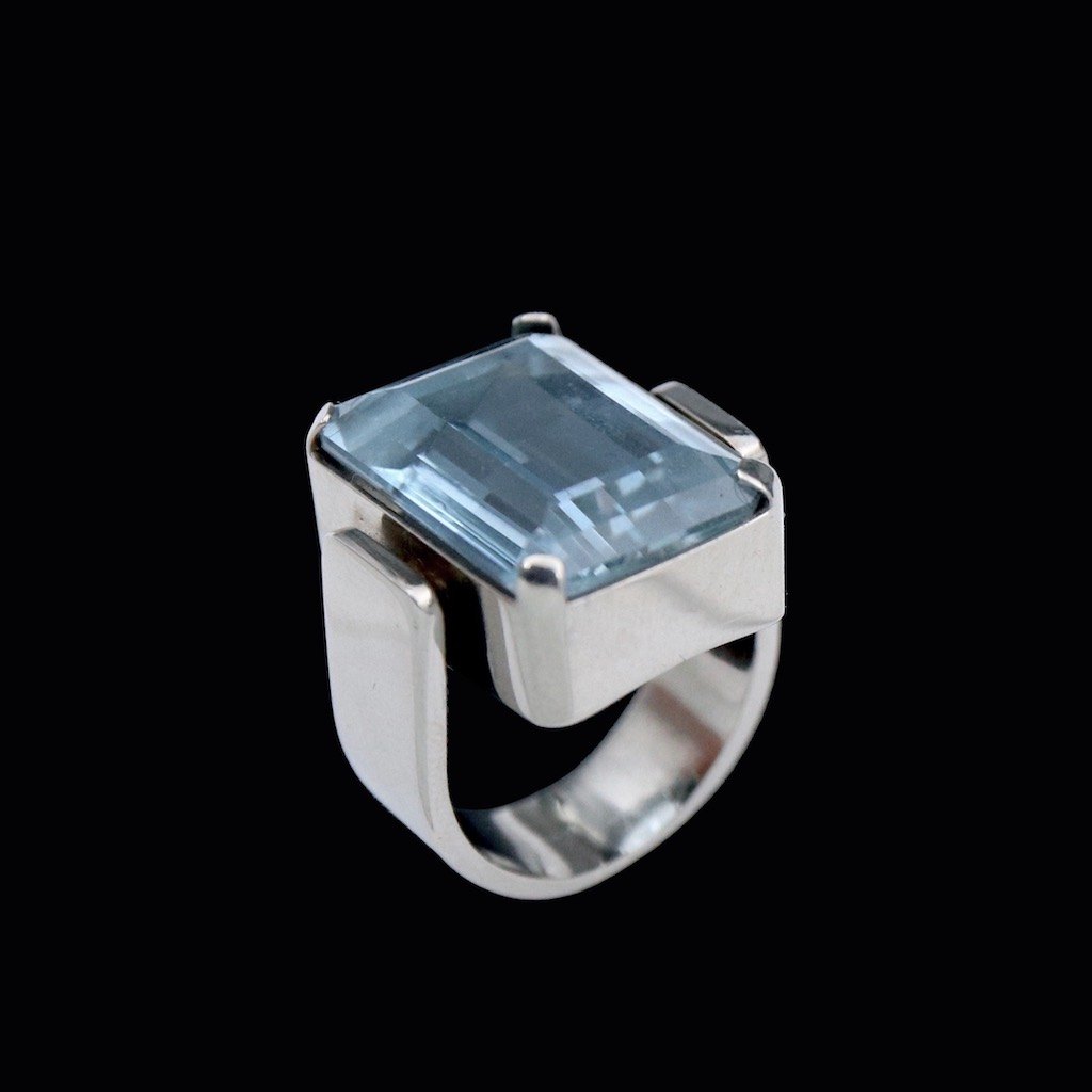 Boy Johansen. 18k White Gold Ring with Aquamarine.Designed and crafted by Svend Erik Boy Johansen - Aarhus, Denmark.