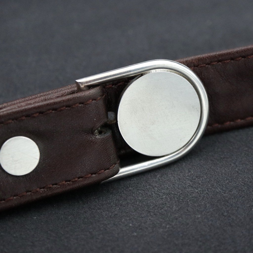Georg Jensen Bæltespænde i sterling sølv #108 med tilhørende bælte i mørk brun læder.Udført i Danmark af Georg Jensen.