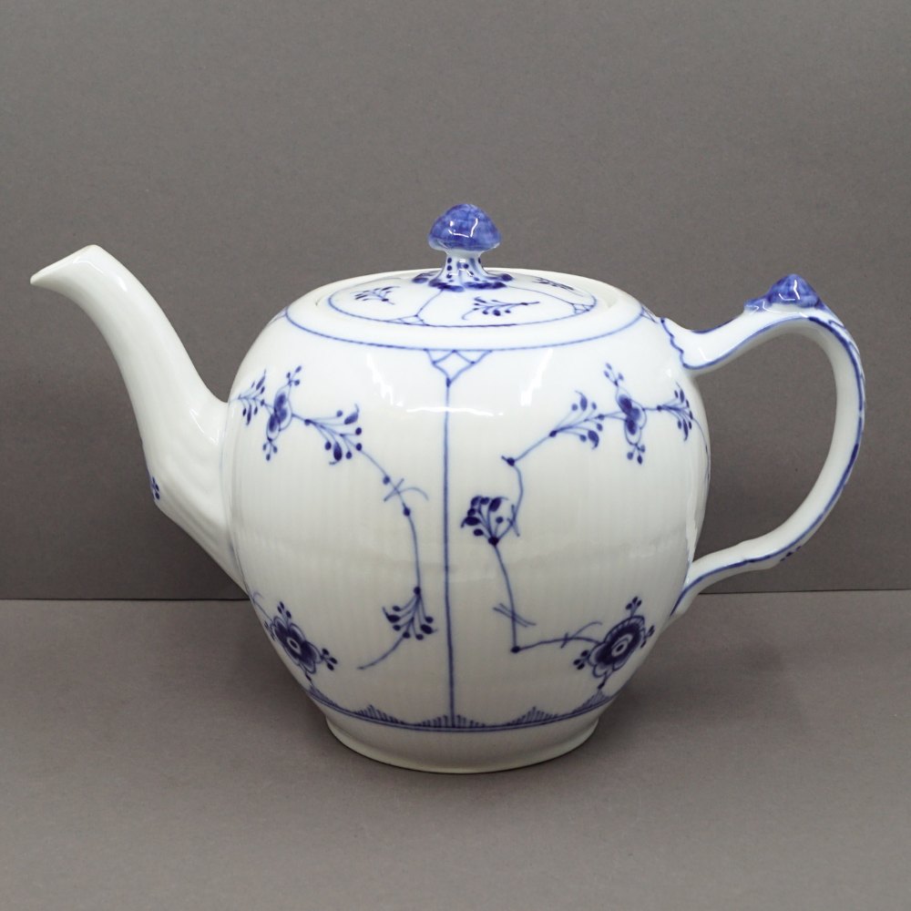 blue fluted; Porcelain teapot.
