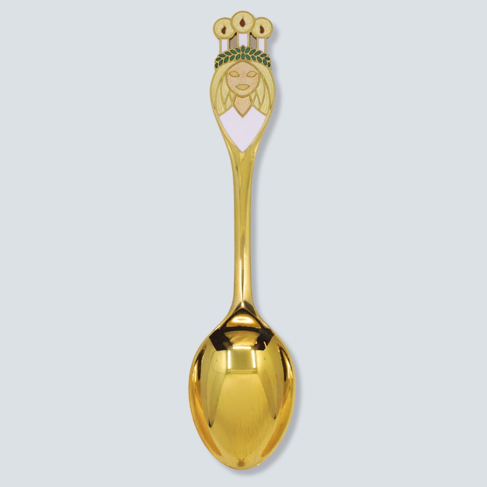 Christmas spoon of gilt sterling silver with enamel.