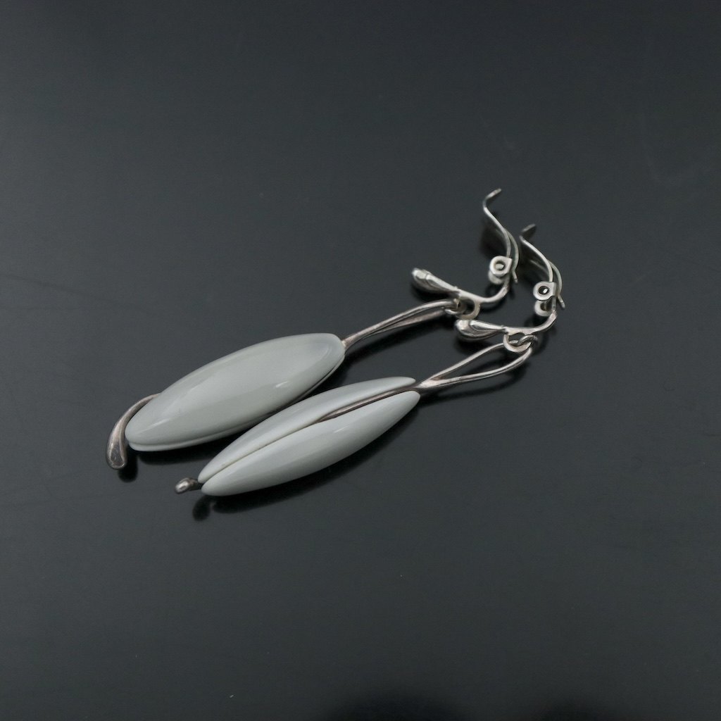 Royal Copenhagen. Porcelain and Sterling Silver Ear Clips.Designed and crafted by Royal Copenhagen.