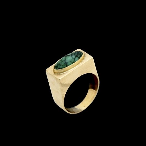 Jørgen Sandberg. Danish 14k Gold Ring with Turquoise.Designed and crafted by Jørgen Sandberg (1966 - ) Denmark.