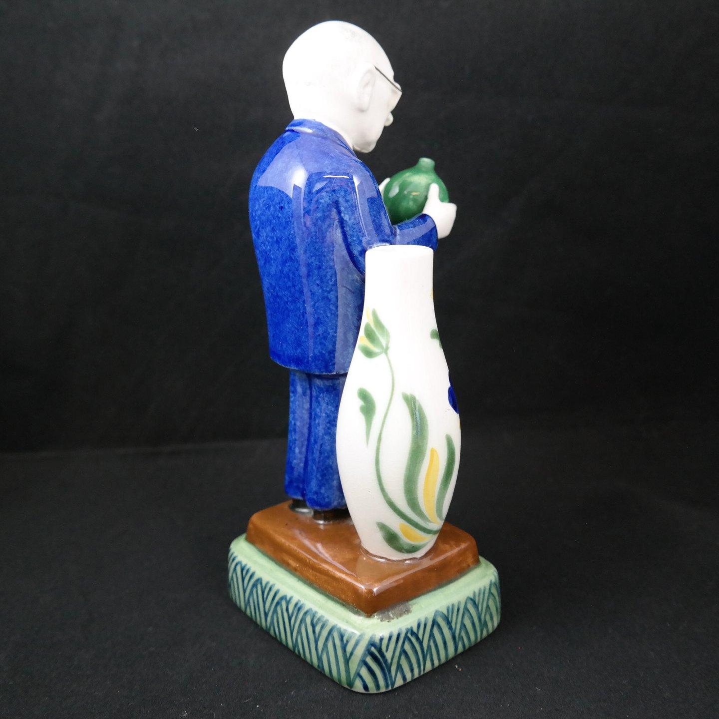 Aluminia. Figur af fajance, dekorerede i polykrome farver.“Christian” Figur af fajance, i form af Aluminia`s, adm. Direktør Chr. Christensen.