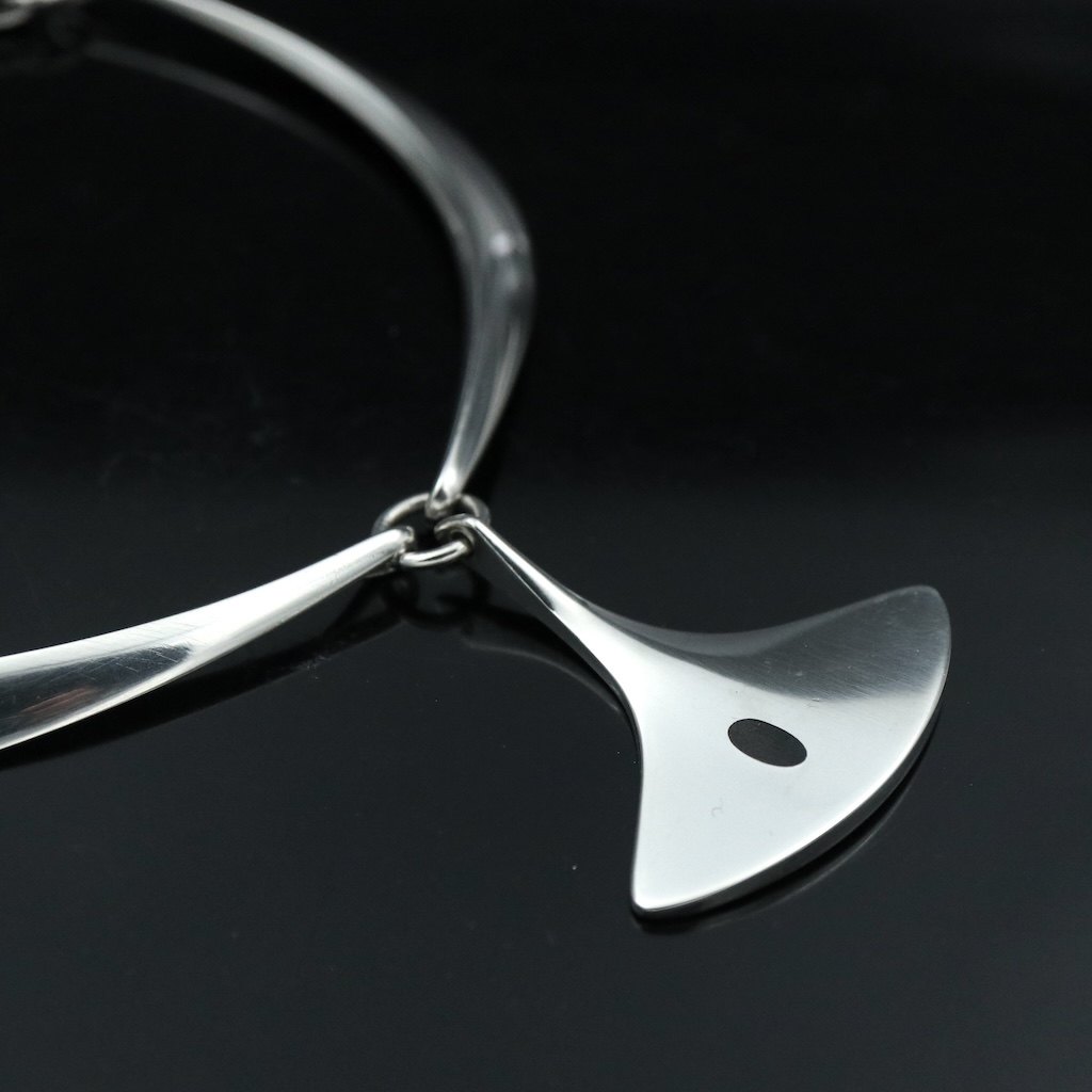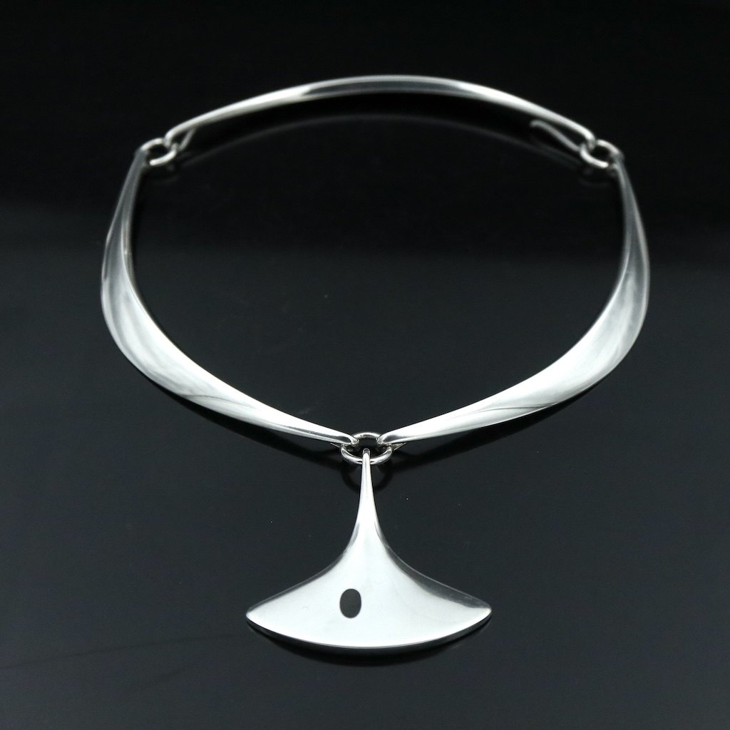 Hans Hansen. Sterling Silver Neckring #320 with Pendant #323 - Bent Gabrielsen.Pendant with black Enamel.