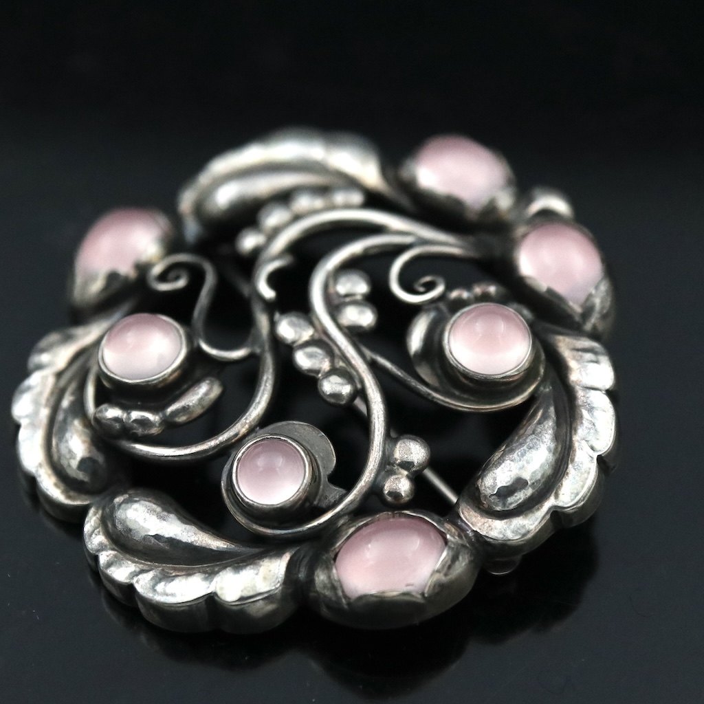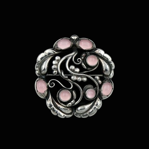 Georg Jensen. Sterling Silver Brooch with Rose Quartz #159.Designed by Georg Jensen 1866 - 1935. Made in Denmark by Georg Jensen A/S.