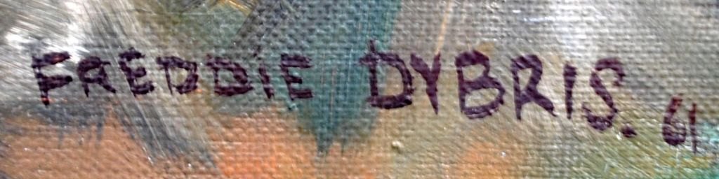 Dybris, Freddie (1922 - 1993) Danmark: Pigen, der vågnede, 1961. Olie på lærred. Signeret: Freddie Dybris 61. H: 62 cm. B: 50 cm. Indrammet: H: 65 cm. B: 54 cm.Emne nummer: 27174