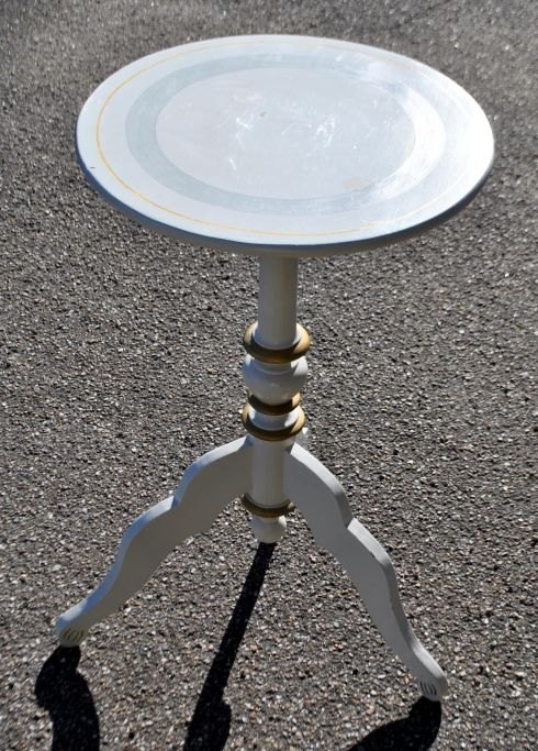 Antique white painted three-legged table, 19th century Denmark. White painted pine with partial gilding. Height: 68 cm. Dia plate: 35 cm.Item number: 27084