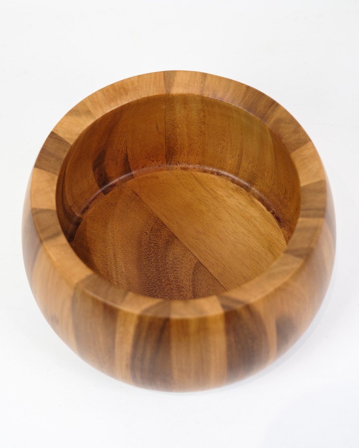 Denne store skål i teak er designet af Jens Harald Quistgaard for Dansk Designs i 1960'erne. Den er lavet af stavlimet teaktræ, som giver den en solid og praktisk konstruktion. Skålen måler cirka 12 cm i højden og 33 cm i diameter og er velegnet til både brug og dekoration.Jens Harald Quistgaard (1919–2008) var en dansk designer og billedhugger, der fra 1954 arbejdede som chefdesigner for Dansk Designs. Han udviklede mere end 4.000 forskellige produkter, herunder skåle, bestik og køkkengrej, og mange af hans designs blev populære både i Danmark og internationalt.