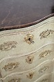 An antique chest of drawers from the 1740s made in the Baroque style. The chest of drawers has its original greyish paint, which highlights its historical charm, and is equipped with a dark brown marble top. Its characteristic curved shapes and detailed carvings are typical of the opulent design aesthetics of the Baroque. This chest of drawers represents an authentic piece of craftsmanship from the 18th century and is suitable as a unique piece of furniture for classic or modern interiors.Dimensions: H:93.5 cm W:66 cm D:42 cm