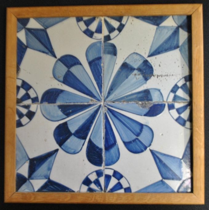 Dutch firpas, star tiles with star corners and rosettes, End of the 18th century. 26 x 26 cm.Framed.