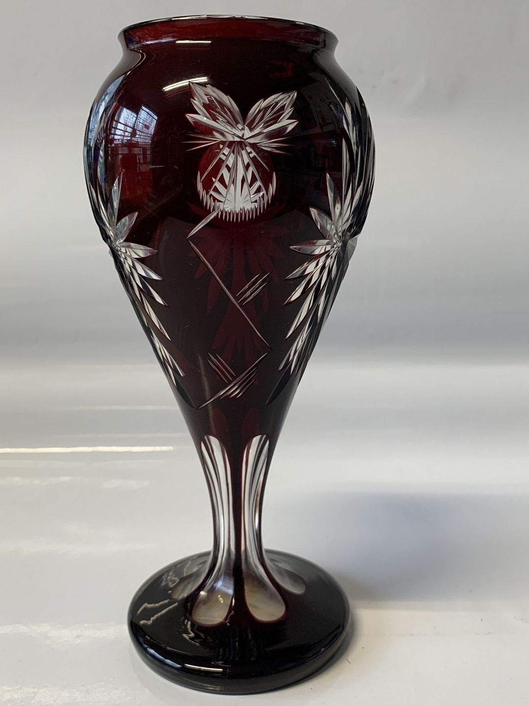 Beautiful antique Bohemian vase in crystal glass, from the 30s.Height: 21 cm.