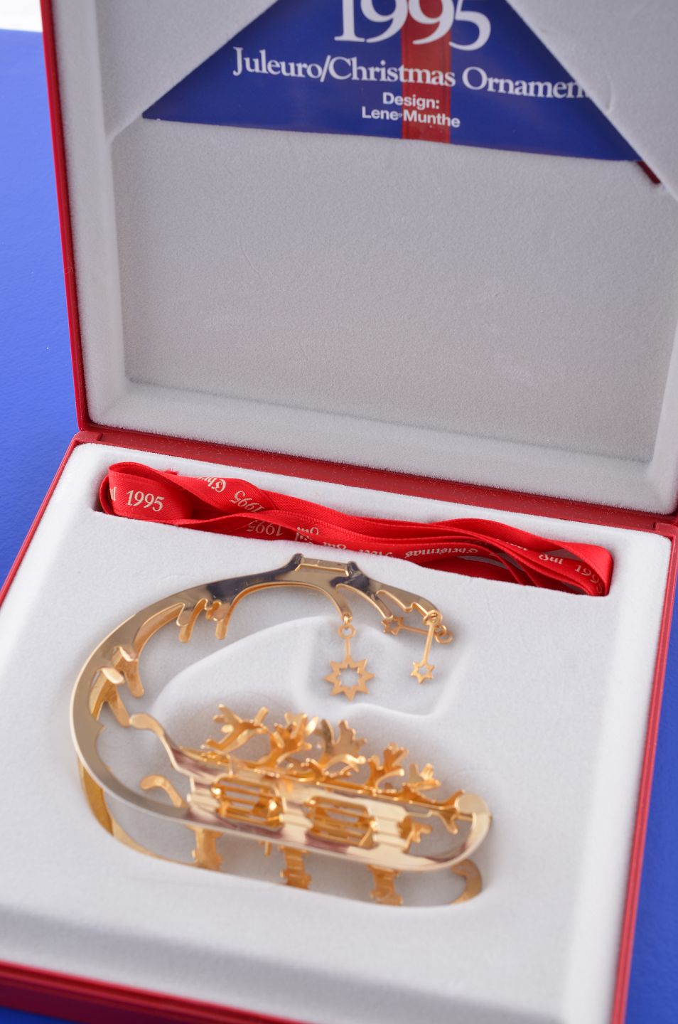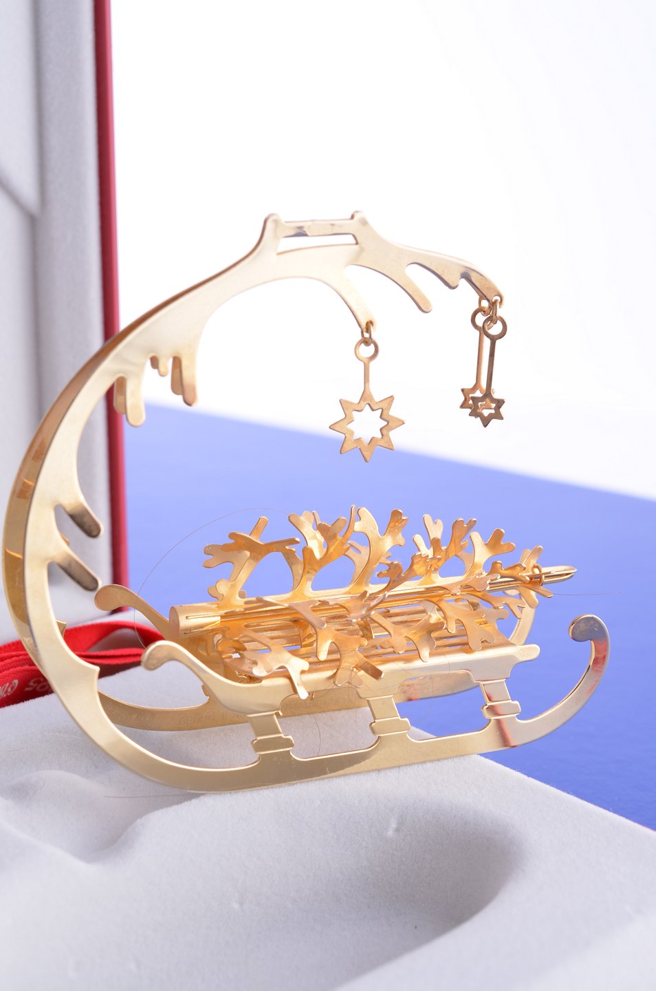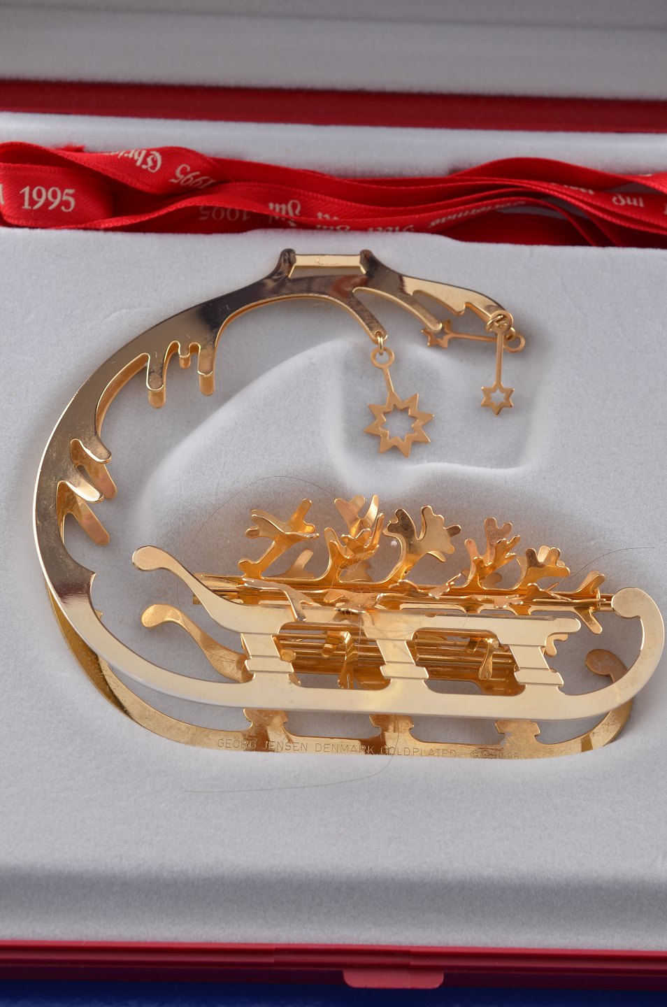 Christmas Sleigh 1995, The Christmas Ornament from Georg Jensen. Gilded brass. Design : Lene Muntbe. Fine condition, with box. Dealer