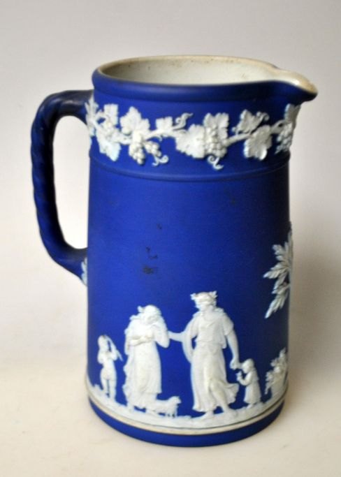 Weedgewood blue jasper bisque jug, 19th century England. Stamped. H.: 15.5 cm.Perfect condition!