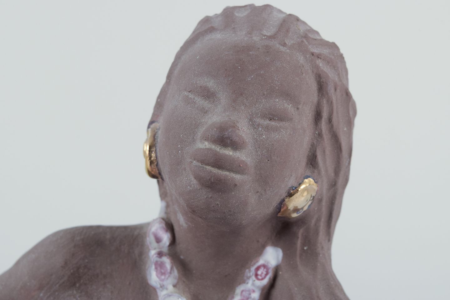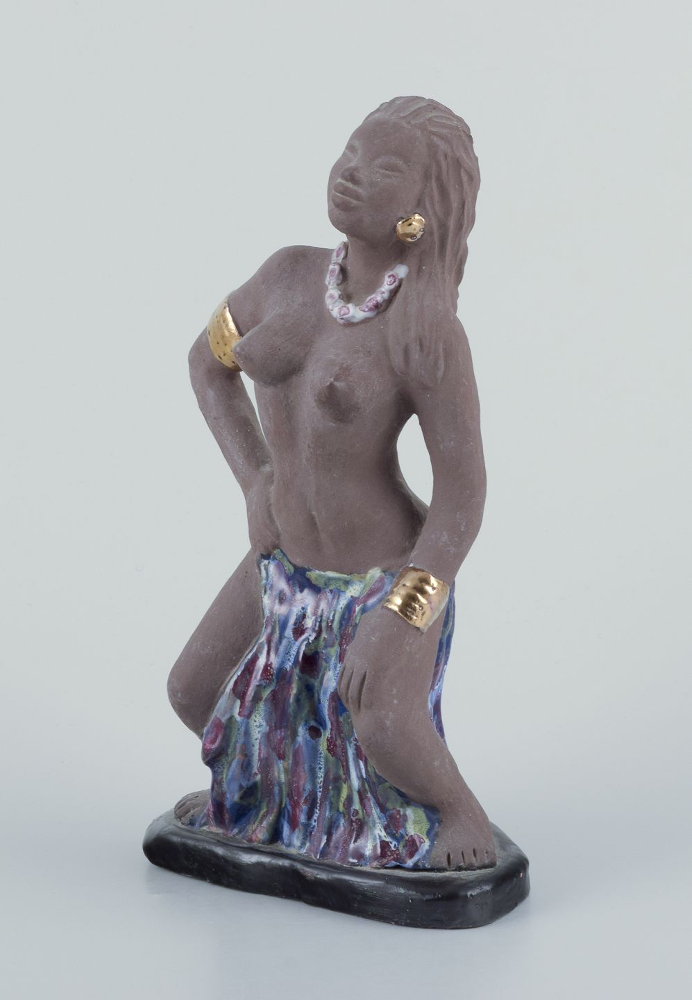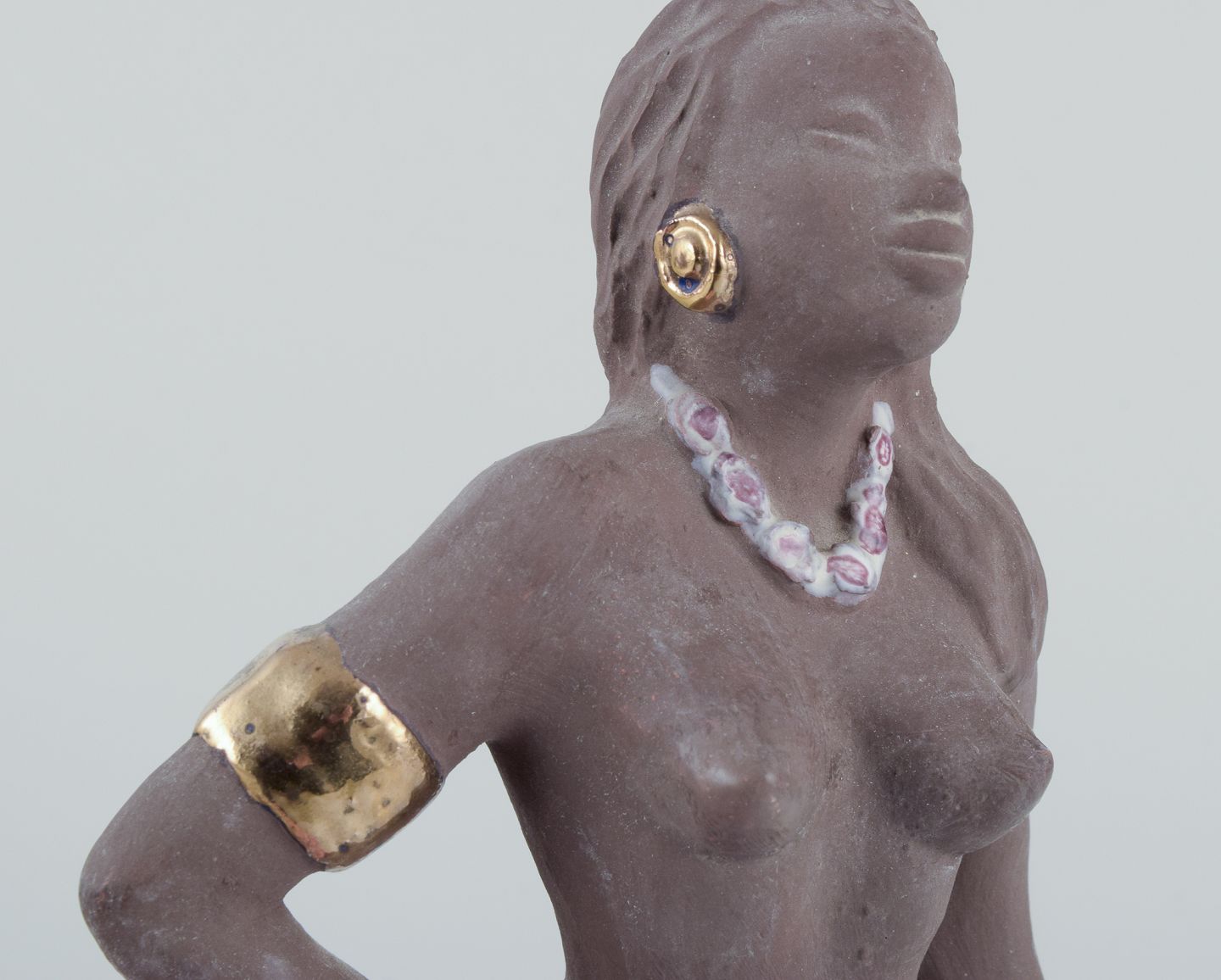 Bengt Wall, Sweden.Bali girl in raw and glazed ceramic with gold decoration.
