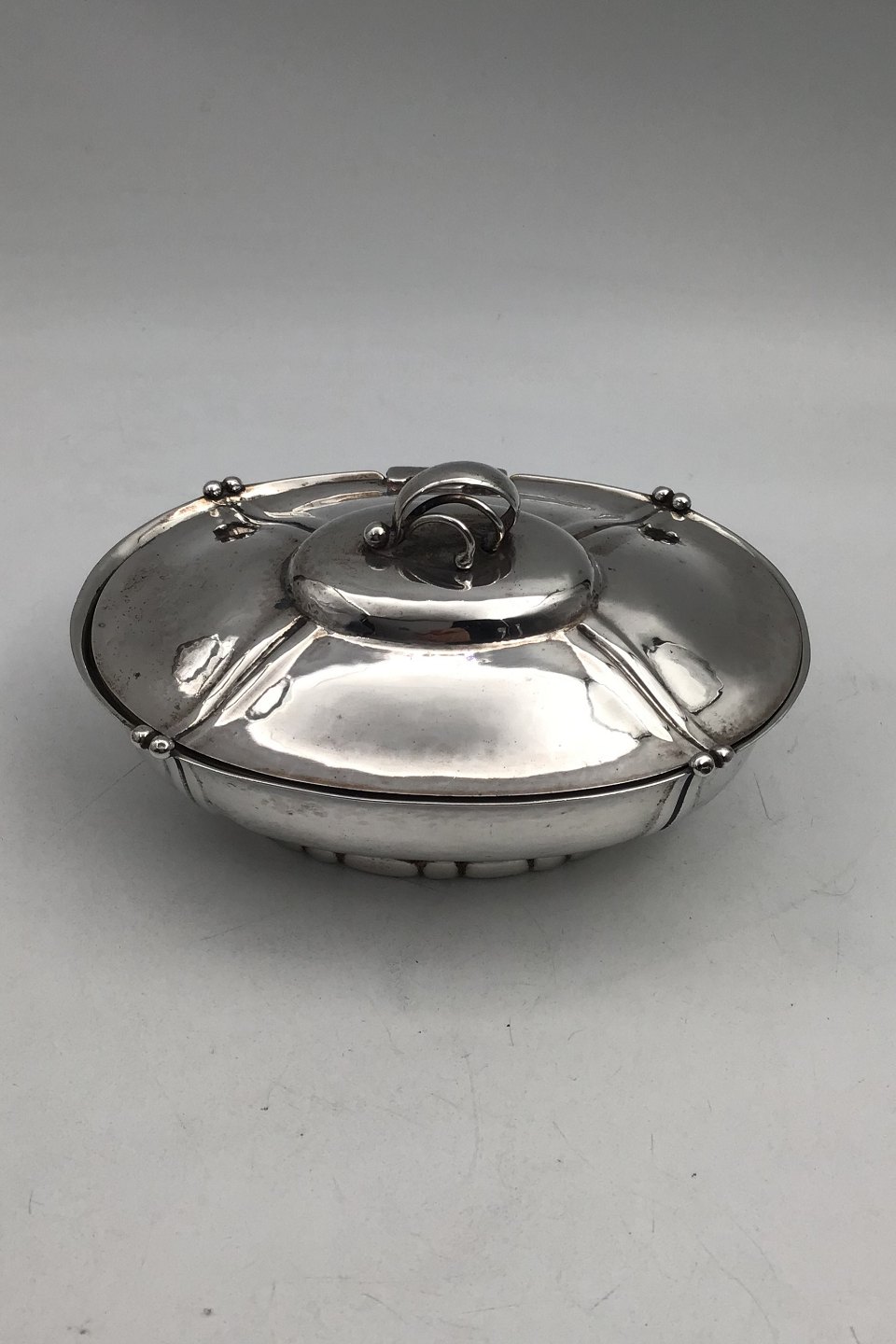 Georg Jensen Silver Lidded Bowl No. 134 (1915-1927)Measures H 7.5 cm (2.95 inch) 9.5 cm x 13.7 cm (3.74 inch x 5.39 inch) Weight 248 gr. (8.74 oz)