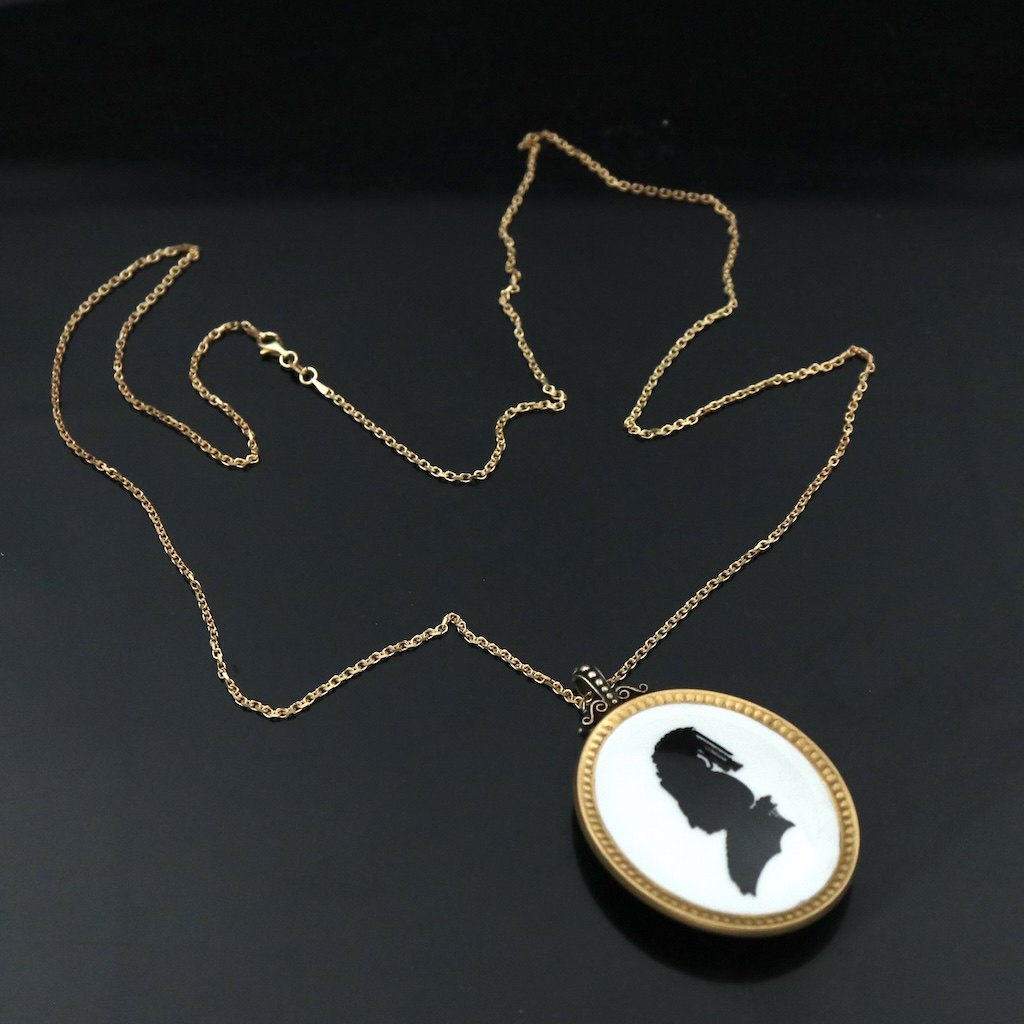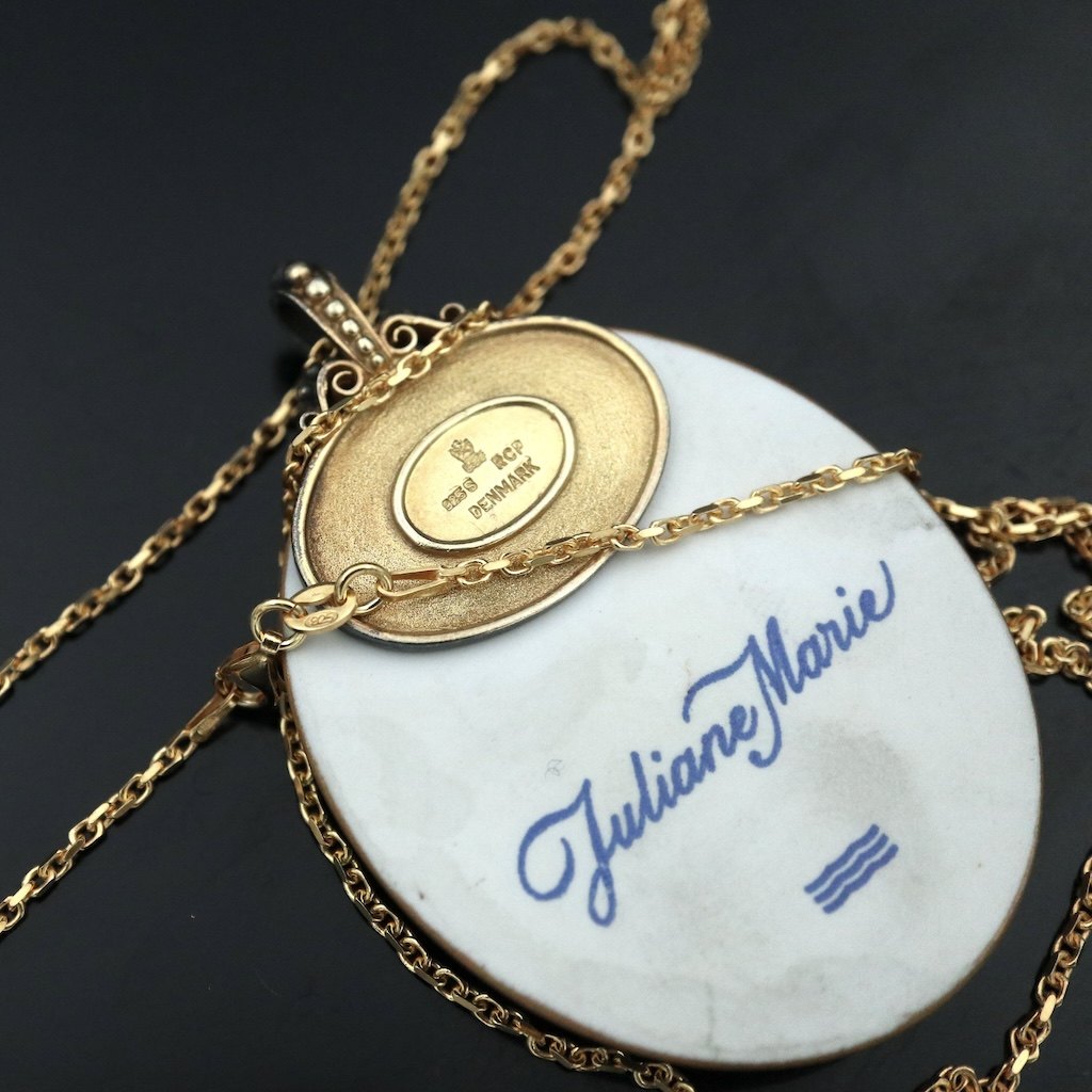 Royal Copenhagen. Porcelain and Gilded Sterling Silver Pendant - Juliane Marie.Designed and crafted by Royal Copenhagen.