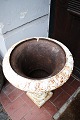 Large, old vase-shaped jar / jardiniere in white painted cast iron with a fine patina. H: 61.5cm. Dia.: 41cm.Decorative in the garden, on the balcony or indoors in the home decor.